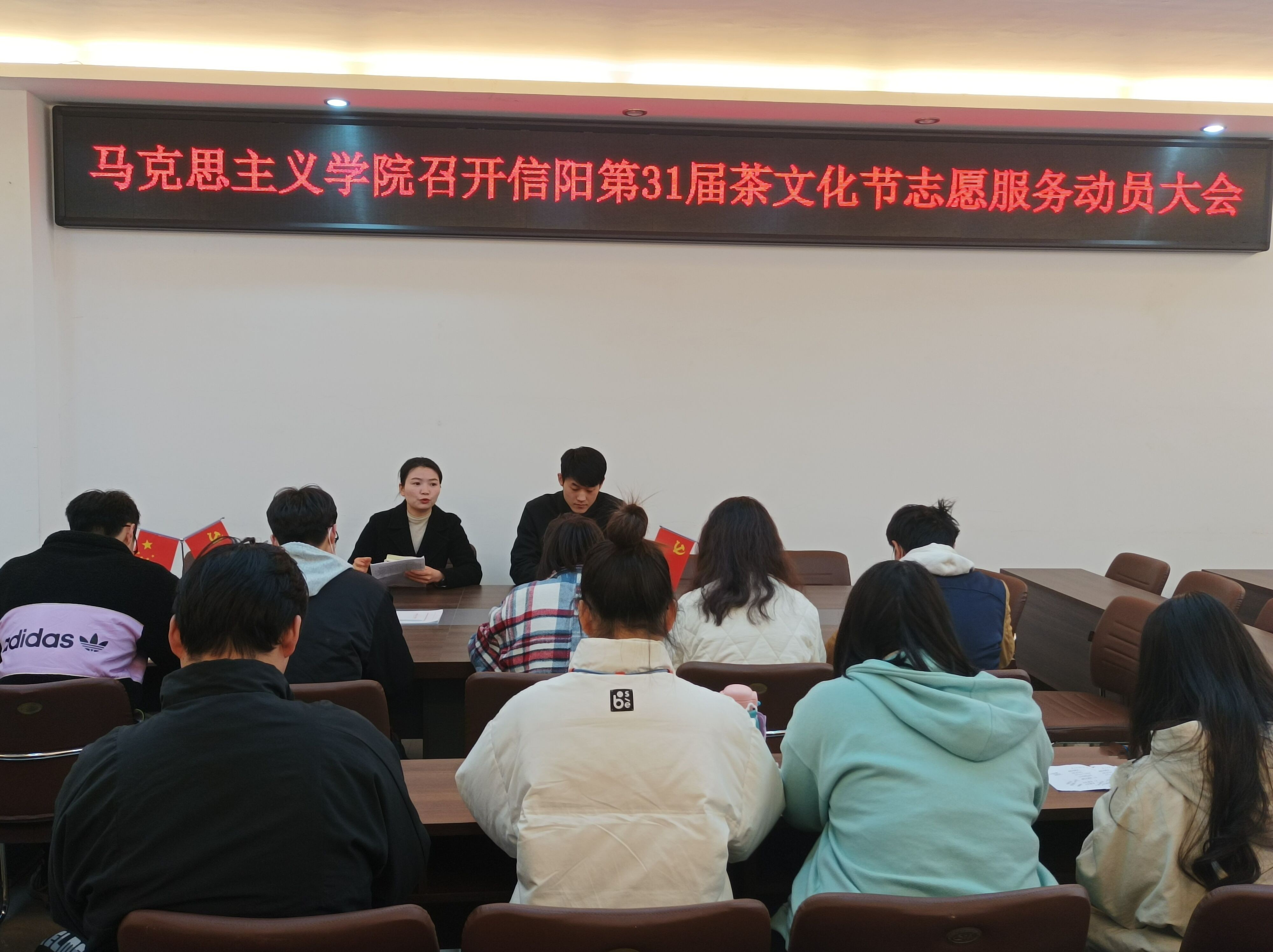 为弘扬青年“奉献、友爱、互助、进步”的志愿服务精神,3月16日上午,XCSport在社科楼323会议室召开信阳第31届茶文化节志愿服务动员大会。公司团委书记陶青青、辅导员沈海蓄、主席团成员及各班团支书共同参与本次会议。会议由陶青青主持。