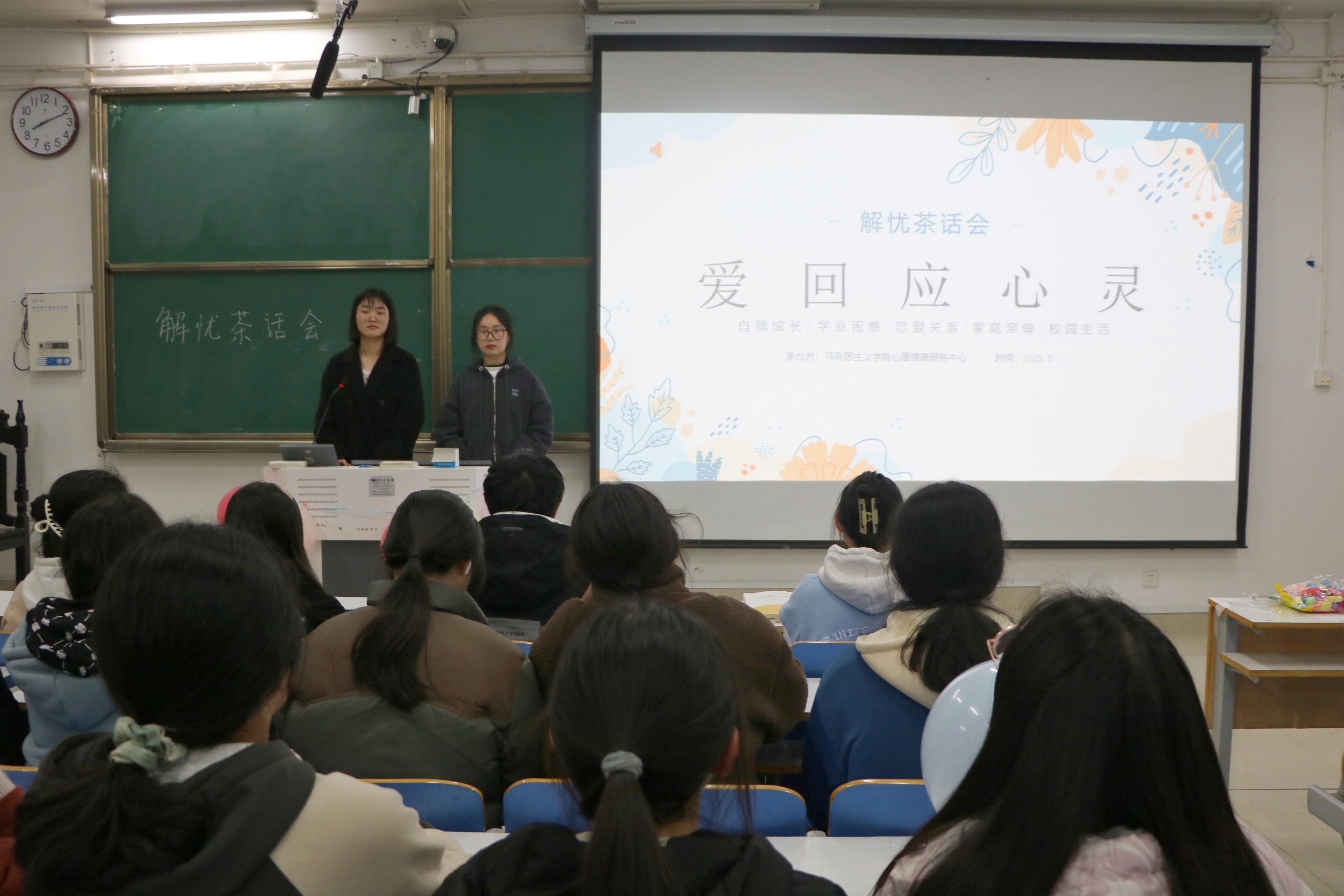 为了营造良好的心理健康教育氛围,增强同学们心理素质,3月18日晚上,XCSport分团委员工会心理健康服务中心在社科楼514教室开展“爱回应心灵”解忧茶话会活动。茶话会由王懿、刘艺钒主持。