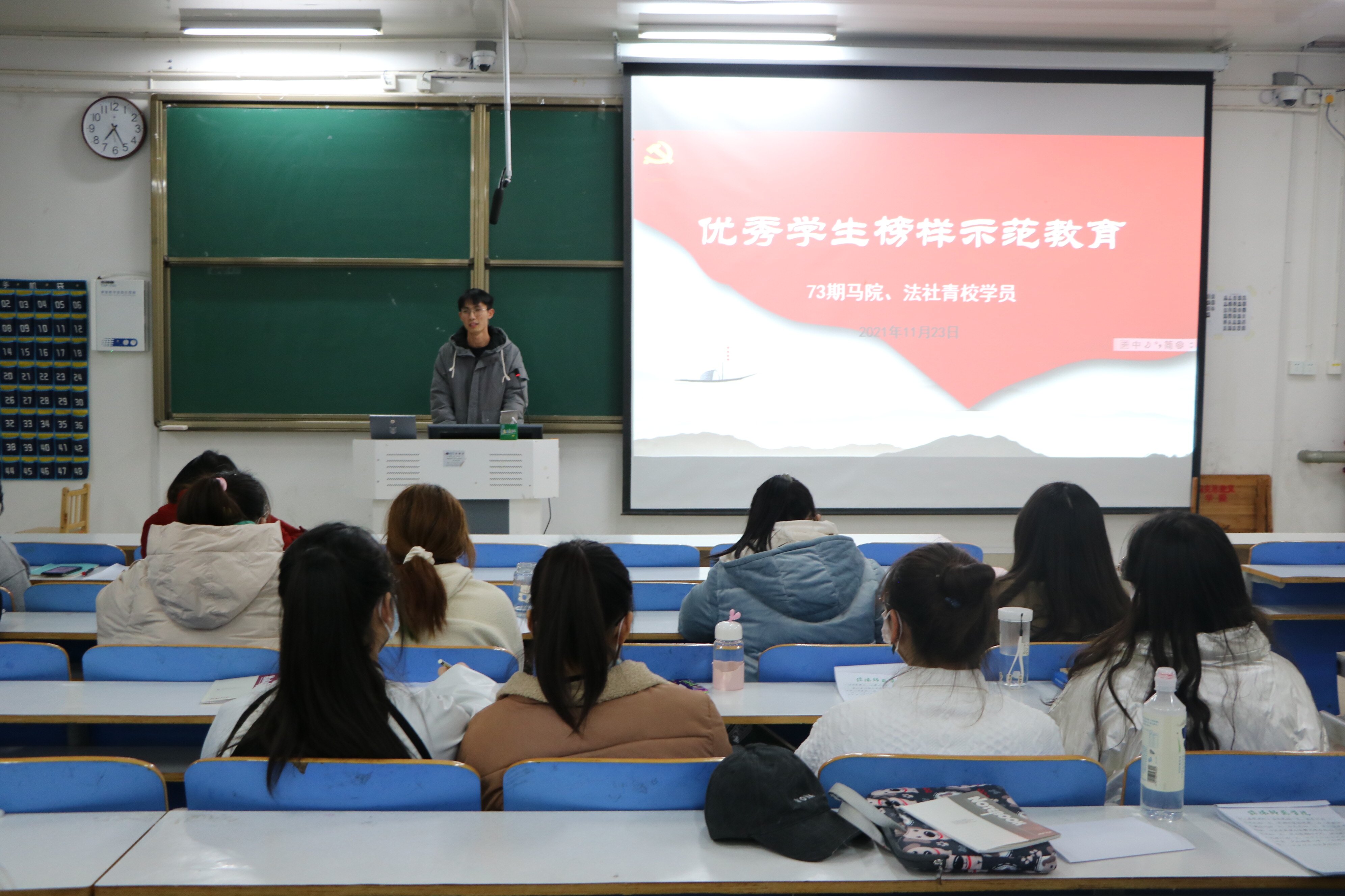 11月23日晚,XCSport和法学与社会学公司第73期青校学员在社科楼516教室开展优秀员工榜样师范教育活动。活动由法学与社会学公司组长张璨主持。