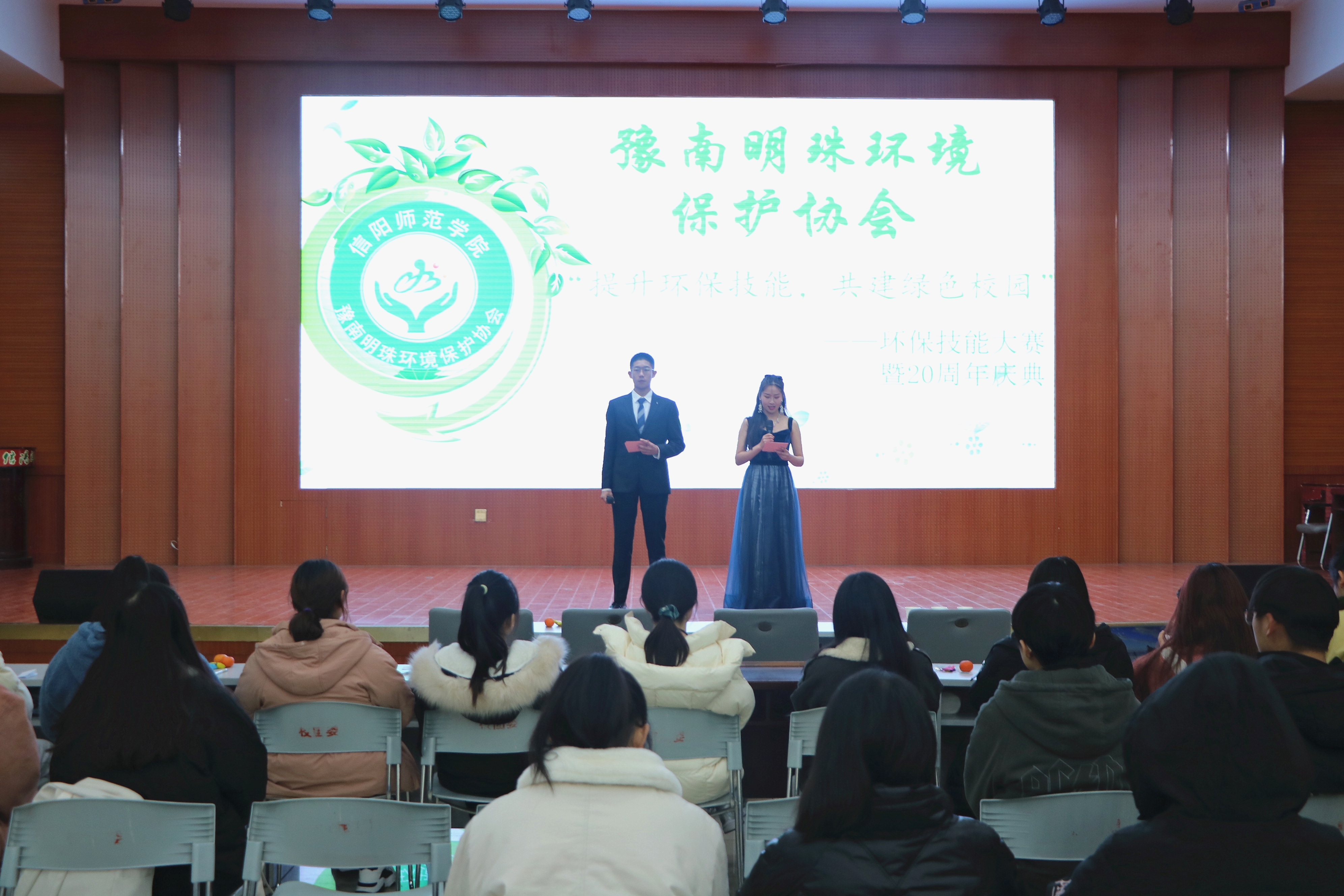 12月24日晚,XCSport豫南明珠环境保护协会“提升环境技能,共建绿色校园”环保技能大赛暨20周年庆典在逸夫楼报告厅成功举办。各公司社团负责人以及数百名员工共同参加本次活动。大赛由常钰梅和戚大宝主持。