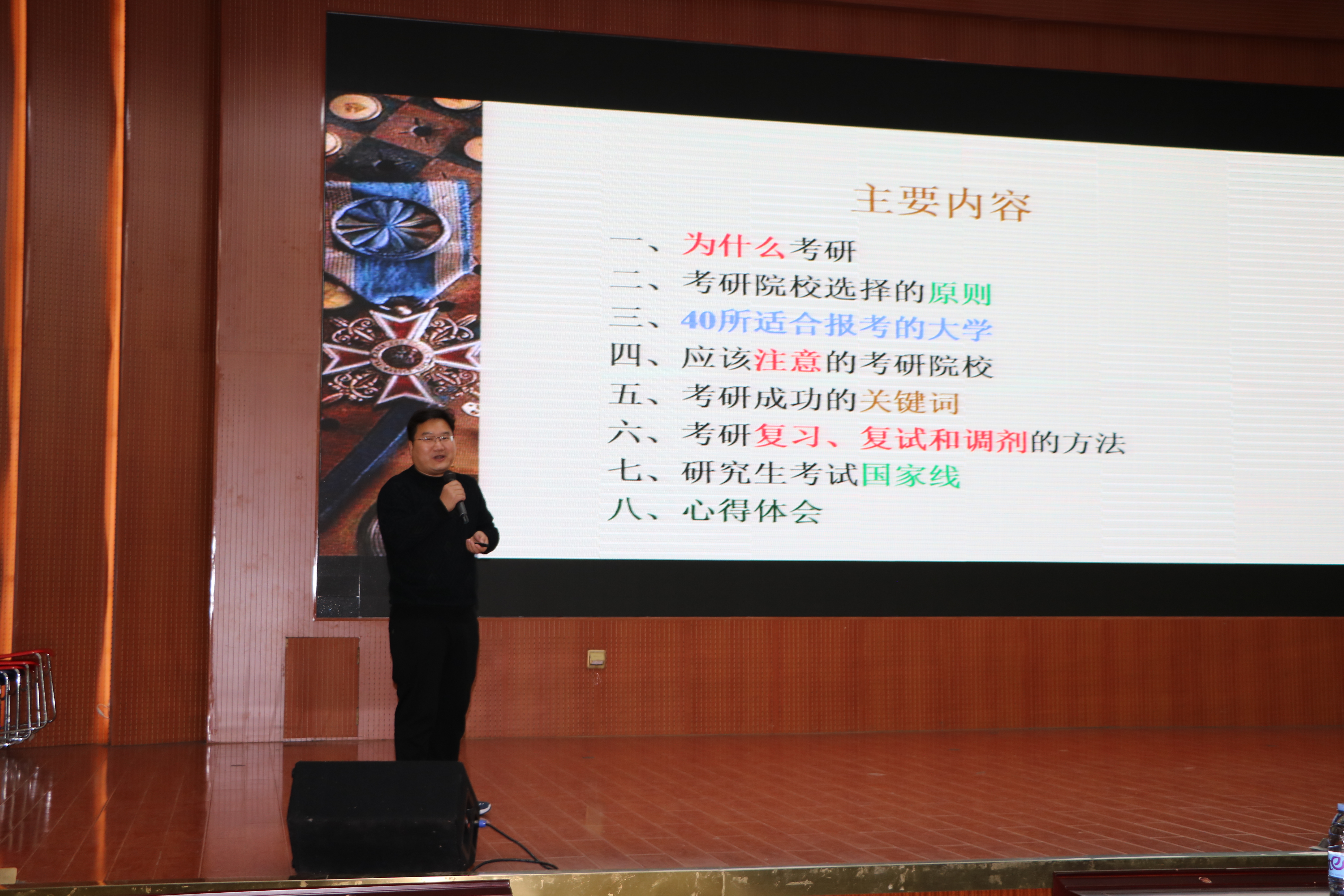 论坛在考研服务社自制考研励志视频中拉开序幕。首先,张伟依次介绍了40所考研院校,为文理科考研学子提供了众多考研院校选择。接着,孙鑫结合事实案例向同学们说明考研的专业选择要结合自身所学专业和兴趣爱好,理性选择。随后,曹梦真针对高年级的考研员工提出了相关建议。她表示,大三学子要对有意向报考的院校试题有所了解,大四学子则要坚定考研目标,合理规划时间,提高执行力,做到“学有所得”。杨青青指出了英语、专业课学习的重要性并建议同学们要积极锻炼身体,不断提高身体素质。优秀考研员工代表宗媛媛结合自身考研经历,从选取专业和院校、制定复习计划、调整心态等方面分享个人经验并详细解答了同学们关于考研的问题。最后,宋羽潇作为员工代表为考研的学长学姐加油助力。本次论坛内容丰富,生动有趣,期间穿插的抽奖互动环节,同学们踊跃参与,现场氛围热烈。