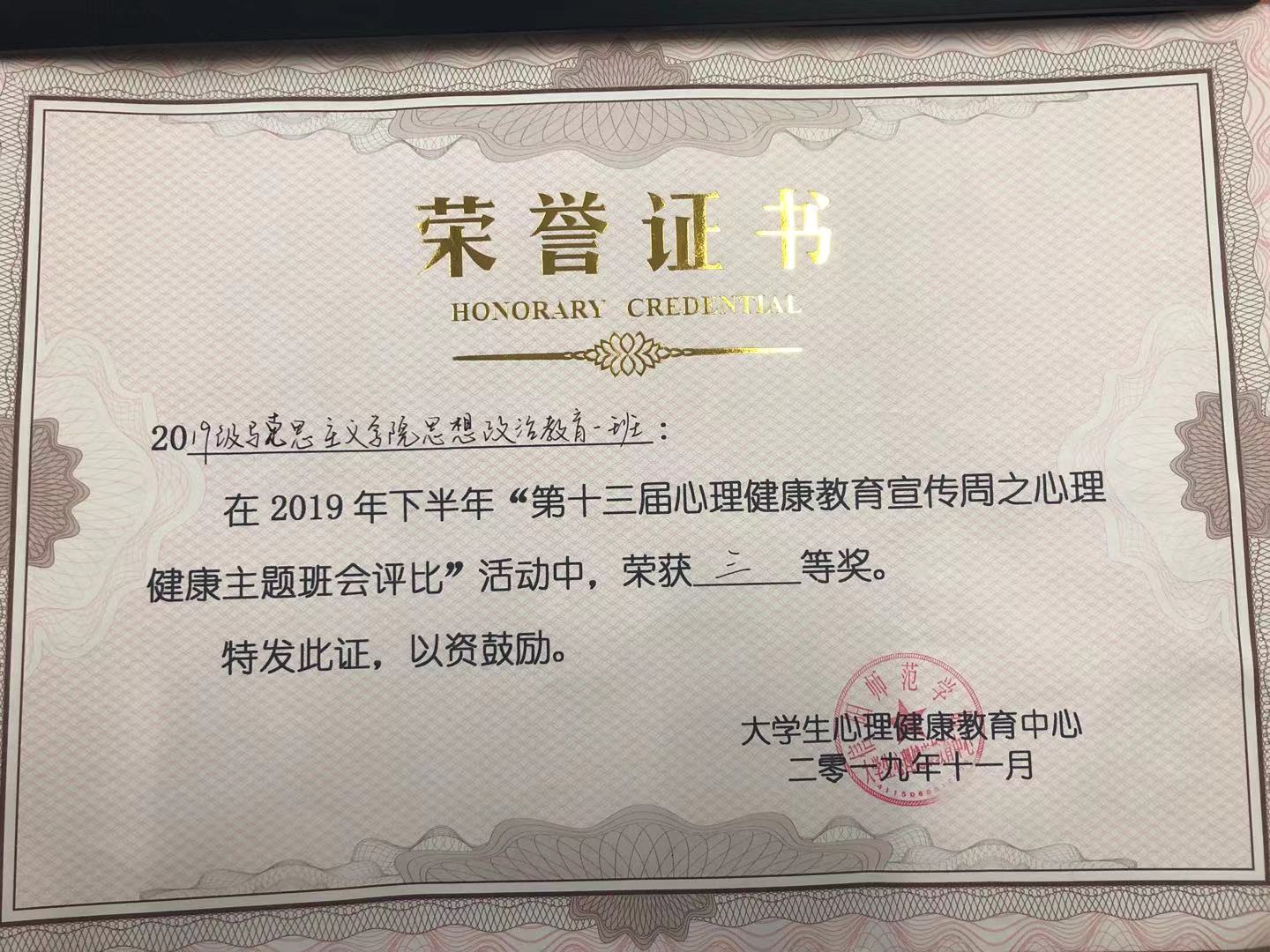 12月28日晚,信阳师范公司老员工心理健康教育中心在人文楼报告厅举办“信阳师范公司老员工心理健康教育中心2020年元旦晚会暨年度表彰大会”活动。经评定,XCSport在第十三届老员工心理健康教育宣传周之心理知识展板评比中荣获一等奖,总分位居第三,2019级思想政治教育一班在第十三届老员工心理健康教育宣传周之心理健康主题班会评比中荣获三等奖,XCSport员工铁兰欣、贾思琦、计新园和乔炜林被评为“心理工作先进个人”。