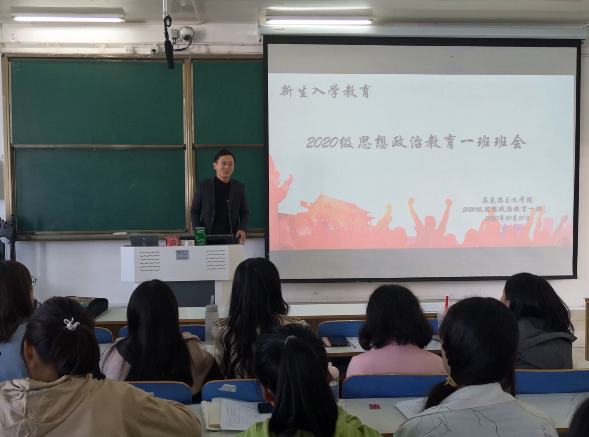 10月10日下午,XCSport分别在社科楼514、516开展新生入学教育班会。辅导员曹栋、陶青青以及2020级全体新生共同参加了此次班会。班会由班代郭世龙、靳雨露主持。