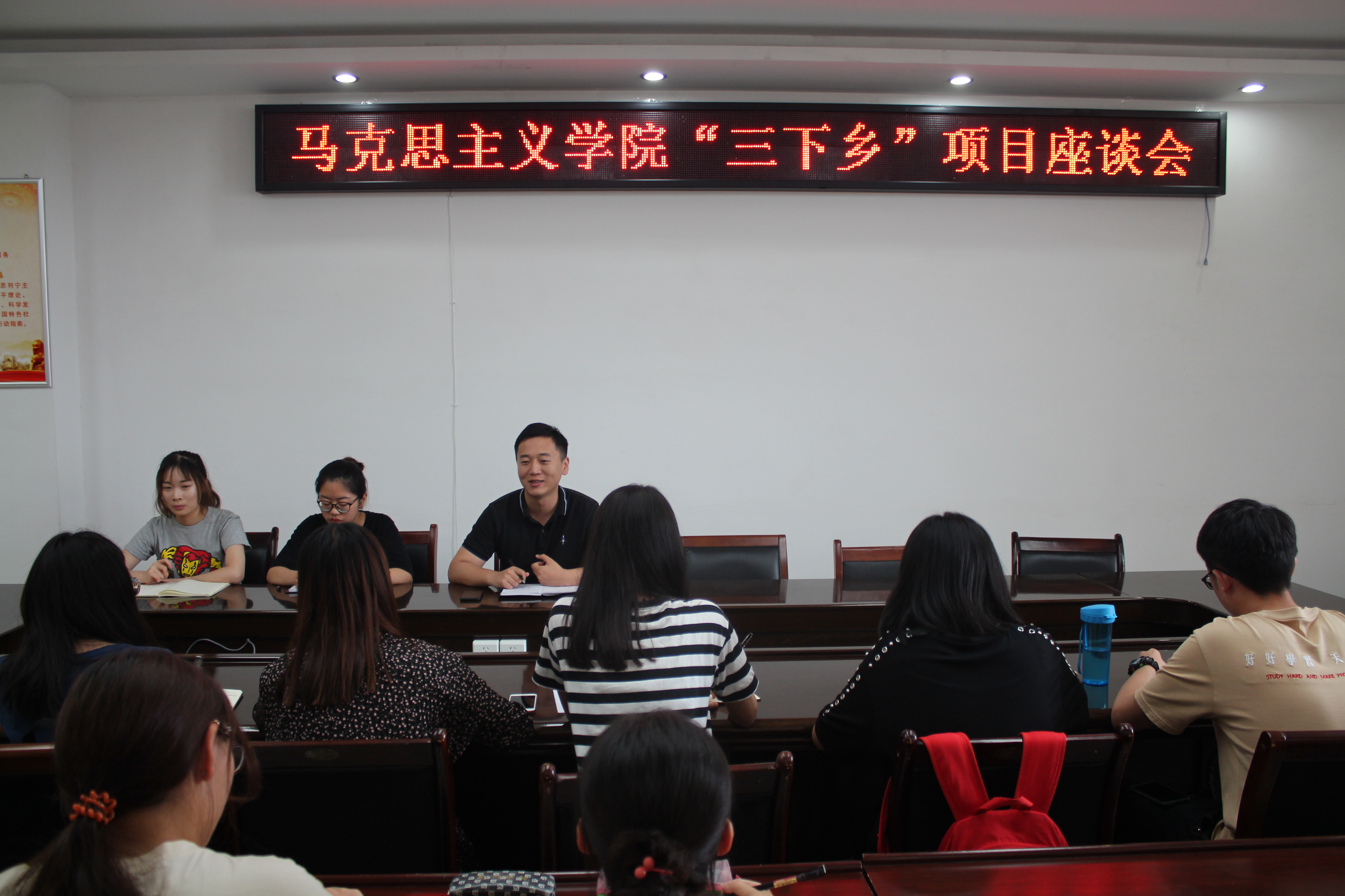 座谈会上,曹栋首先对《信阳师范公司2019年老员工暑期“三下乡”社会实践活动方案》进行解读,对活动流程、团队规则、申报审核等相关要求进行详细阐述,并强调实地调研的可行性。接着,各项目负责人依次介绍本团队的项目选题,围绕美丽乡村建设、红色专题调研、理论普及宣讲以及环境污染治理等方面简述他们的具体想法。最后,曹栋针对个别选题存在切入点较大、可行性较低等问题,提出一些整改建议,希望各团队能够仔细研磨,将专业知识运用到实践中去,在实践中锻炼专业能力,并预祝“三下乡”社会实践活动取得圆满成功。