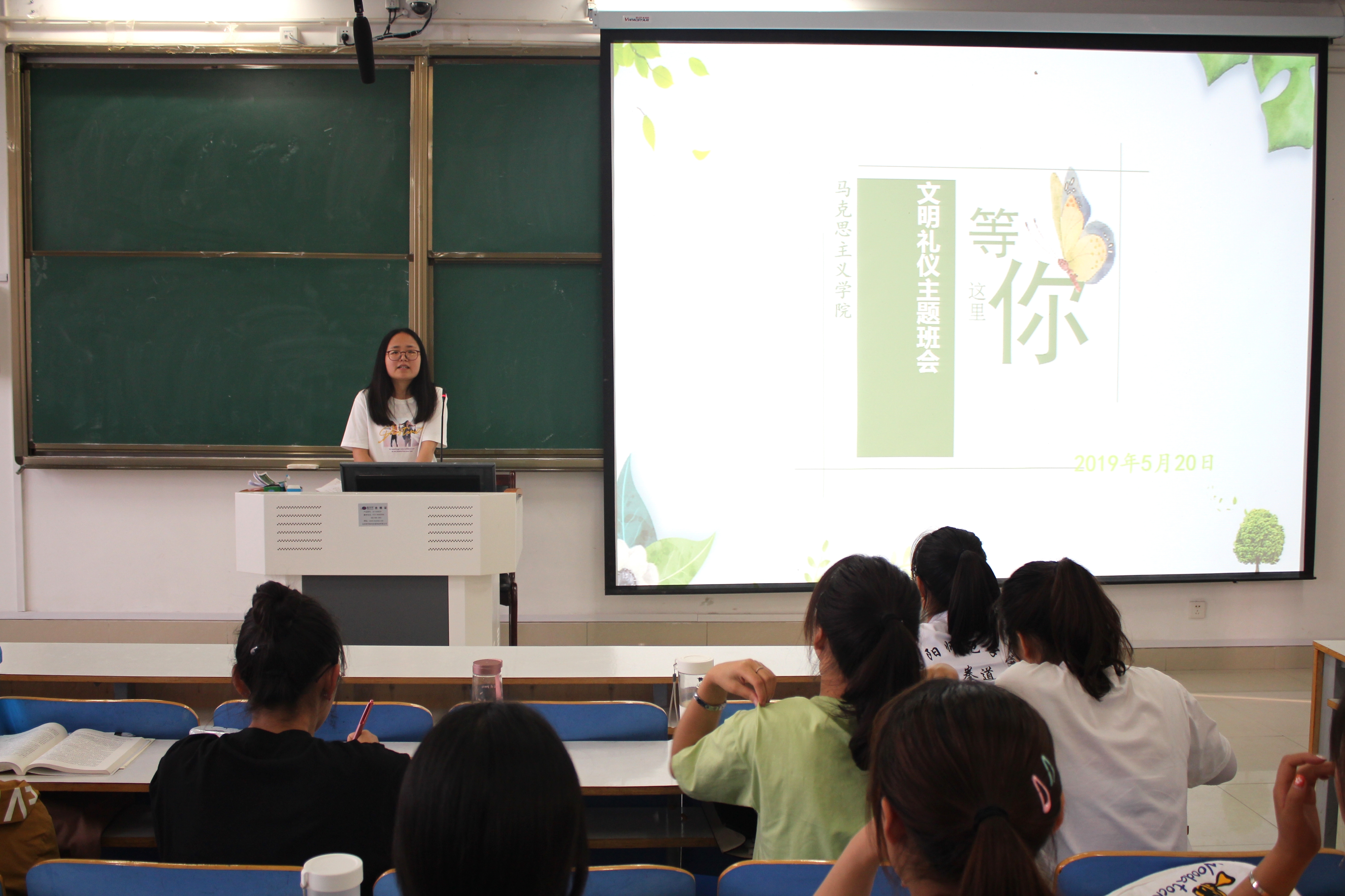 5月20日下午,2018级文明礼仪主题班会在社科楼514教室顺利召开。2018级辅导老师曹菁菁、生活劳卫部分管主席刘雅丹、部长张晓艳及2018级全体同学参与此次班会。班会由张晓艳主持。