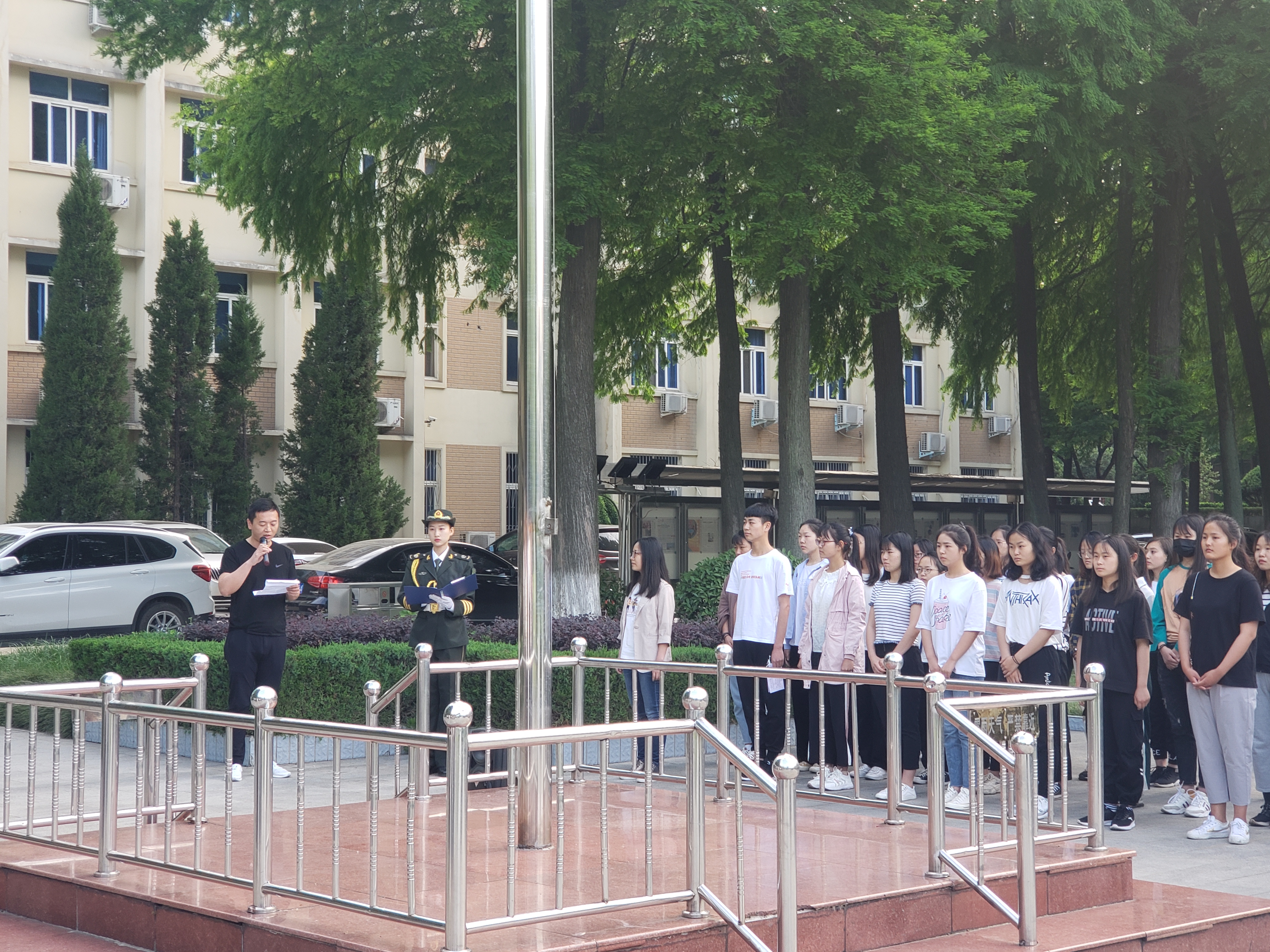 伴随着激昂的旋律,升旗仪式正式开始。国旗护卫队高举着鲜艳的五星红旗,迈着矫健的步伐踏入升旗台。国歌奏响,五星红旗冉冉升起,全体师生肃立,行注目礼。随后,曹栋发表讲话,他以“弘扬五四精神,做有为新青年”为题,指出青年一代肩负着振兴中华的历史重任,要将“五四精神”发扬光大,对自己进行更高水平的要求。在生活中,注意日常行为规范,展现青年人朝气蓬勃的精神风貌;在学习上,刻苦钻研,勇于拼搏,彰显青年人“舍我其谁”的豪情壮志。最后,员工代表张国庆作了题为“新时代青年争做时代弄潮儿——献礼祖国七十周年华诞”的发言。他讲到七十年的风雨征程让中国在党的领导下变得强大,新时代青年更要听党话,跟党走,奉献祖国,奉献人民,让爱国主义的伟大旗帜,始终在心中高高飘扬。