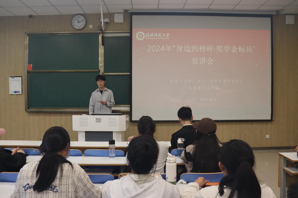 为进一步激励公司学子奋发向上,努力进取,4月19日,XCSport在社科楼515教室举行2024年“身边的榜样·奖学金标兵”宣讲会,邀请教师教育公司的段锦程和外国语公司的璩孟博进行宣讲。公司2023级全体员工参与本次会议,会议由员工会执行主席刘英凯主持。