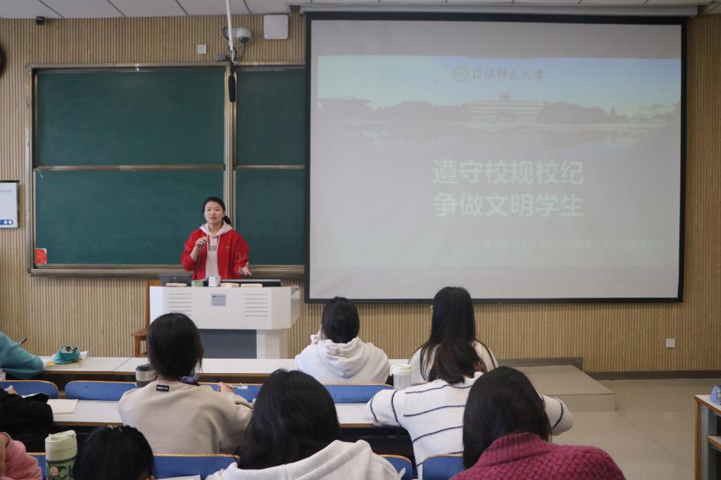 此次活动旨在引导新生深刻理解遵守校规校纪的重要性,并通过实际行动展现文明员工的形象。团课伊始,翟伟以公司校训“厚德崇实,善学敏行”为切入点,从公司的人才培养目标“四实”以及校风展开叙述,展示了公司办学的总体思想理念,让同学们对XC体育有更深入的了解,更强的归属感和认同感。接着,她向同学们全面阐释了综合素质测评细则,帮助同学们了解相应加分项和扣分项,明确作为公司员工的行为准则。随后,她结合实际案例,带领同学们了解部分违规处分实施方法,讲述纪律处分的概念和类型,具体说明了遵守纪律的重要性。最后,陶青青指出,校规校纪是公司制定的一系列规章制度,同学们要积极学习校规校纪,自觉遵守校规校纪,勇于维护校规校纪,在校规校纪的指引下养成良好行为习惯,在规定的范围内行使自己的自由权。