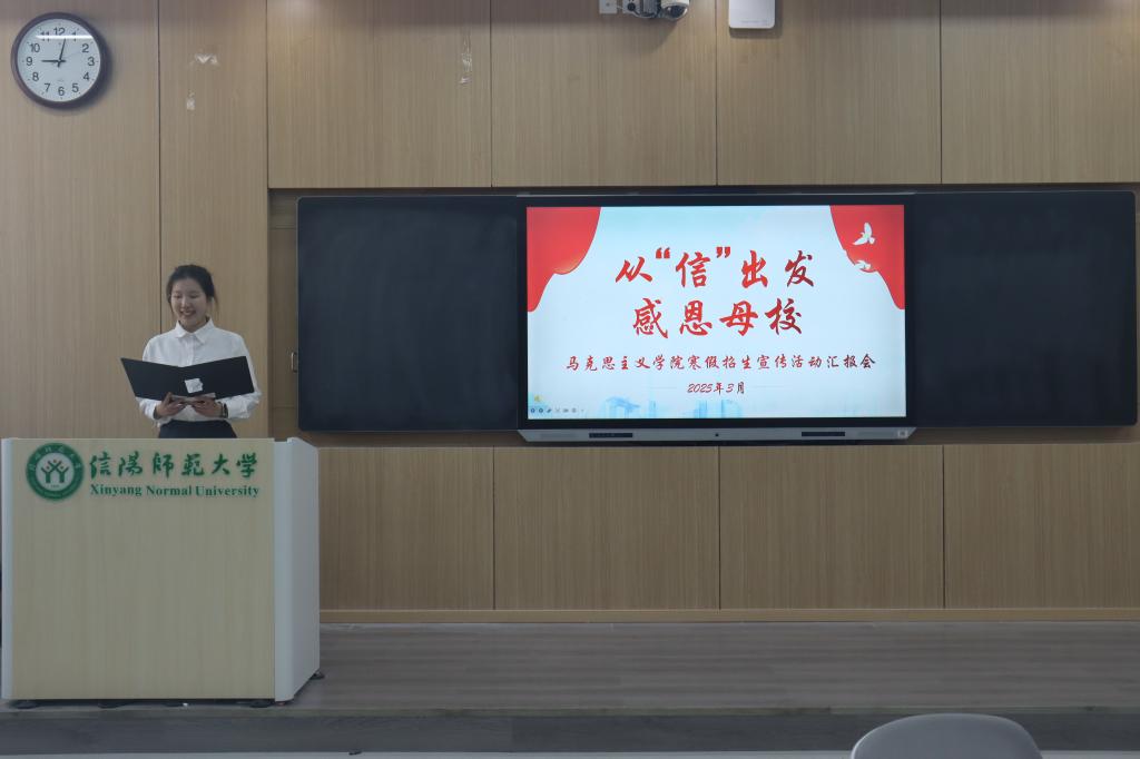 为总结寒假社会实践成果,促进经验交流与分享,3月6日上午,XCSport在社科楼516教室召开寒假招生宣传暨“信阳红”系列实践活动汇报会。公司团委书记陶青青、员工会主席团成员及各汇报小组代表参加本次汇报会,会议由张珊珊主持。