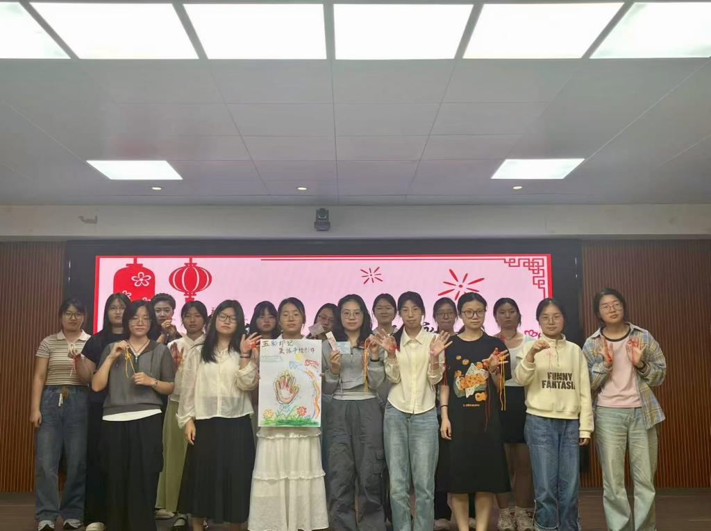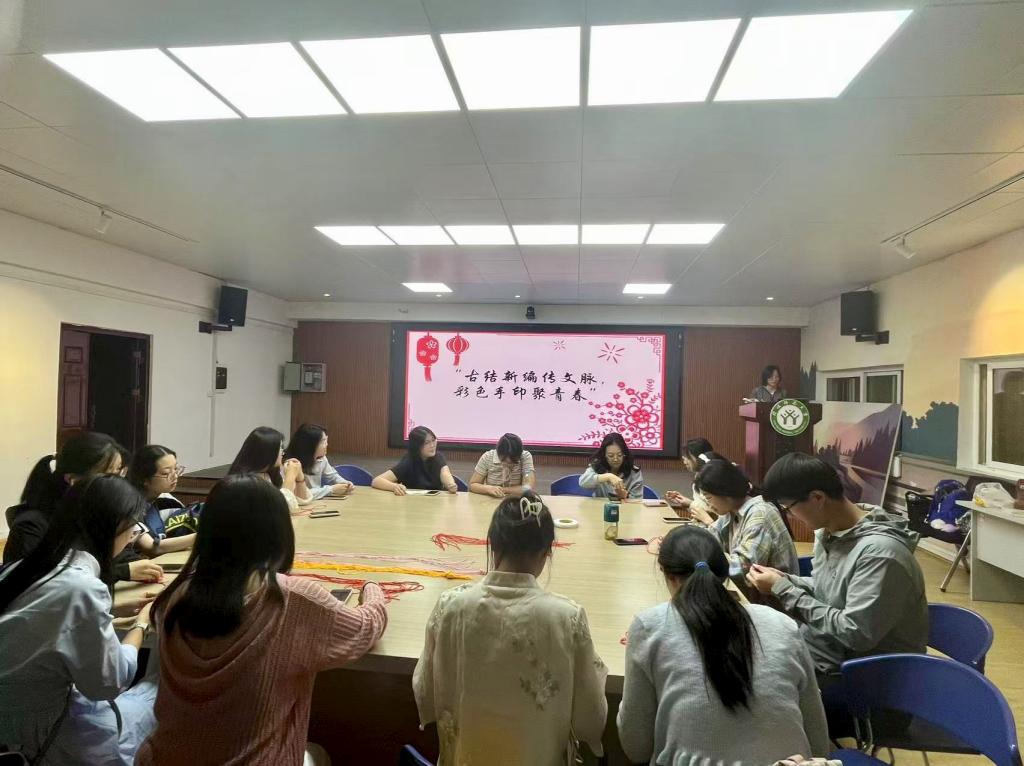 本次活动主要分为两个环节。第一环节:巧手传情·中国结制作,在相关视频以及工作者的指导下,参与者将学习编织简单的传统中国结(如吉祥结、盘长结等)。通过非遗手工实践,感受“绳与结”中蕴含的团结、坚韧的中华文化精髓。第二环节:五彩印记·集体手绘创作,在空白画纸上,每位参与者用彩笔画下手印,并签上自己的名字也可围绕手印自由绘画或书写寄语(如青春宣言、活动感悟等),最终拼接成集体艺术作品。