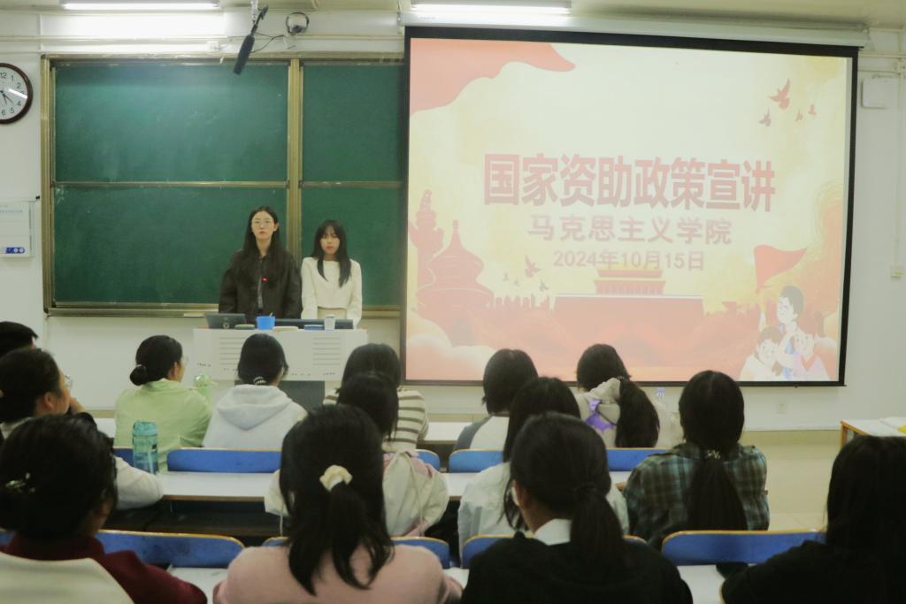 会上,张雅涵、李婉蓉以高校员工资助政策为出发点,重点解读了国家奖学金、国家助学金、国家助学贷款、校级综合奖学金、勤工助学岗位等全方位的资助工作体系,并详细介绍了相关的申请条件和办理流程,为大家提供精准、恰当的资助政策咨询服务。张雅涵结合新生开学的实际情况,重点讲述公司设立的“绿色通道”,以及家庭困难员工缓交学住费政策。随后,李婉蓉指出,国家资助政策是帮助经济困难员工完成学业、成长成才的重大举措,在确保家庭经济困难子女应助尽助,健康发展方面具有重要作用。希望受助同学将感恩之心融入日常生活,在国家资助政策的大力保障下笃行不怠、奋力争先。