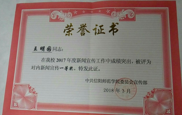 在学术研究中,申请并参与的2016年度老员工科研基金一般项目《法律视角下共享单车的侵权类型以及防范—以信阳师范公司为例》获得立项,所写《老员工暑假工作情况调查研究》获得2017年暑期社会实践 调研报告三等奖。在信阳师院报和《南湖评论》发表共计4篇文章,获得共计校级、院级征文比赛奖项共计7项,积极参与公司各项文体活动和社团活动,获得奖项20余项。