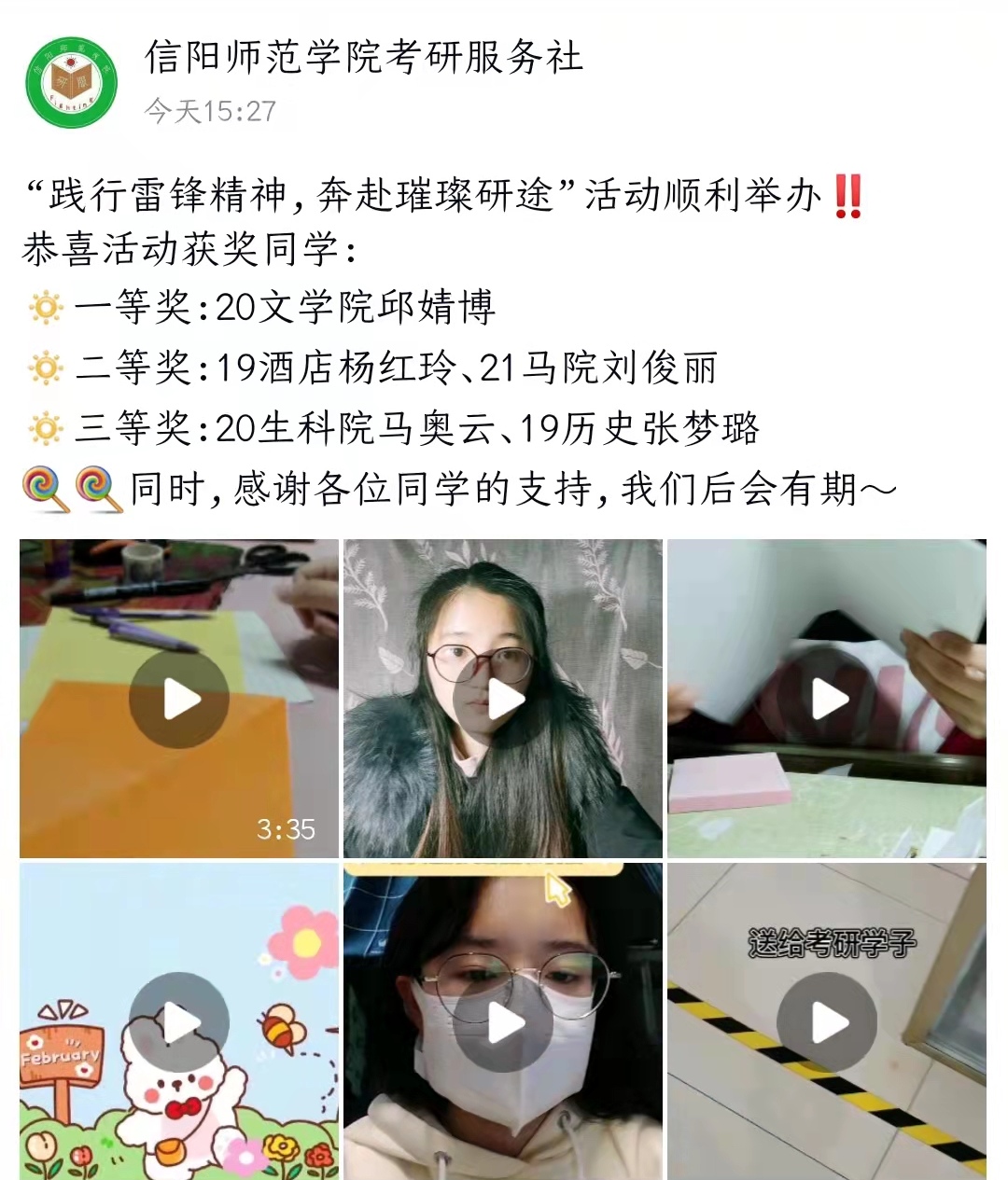 为引导老员工深入学习雷锋精神,赋予雷锋精神新的时代内涵,引导当代青年树立服务意识,考研服务社于3月19日至25日在全校开展“践行雷锋精神,奔赴璀璨研途”志愿服务活动。