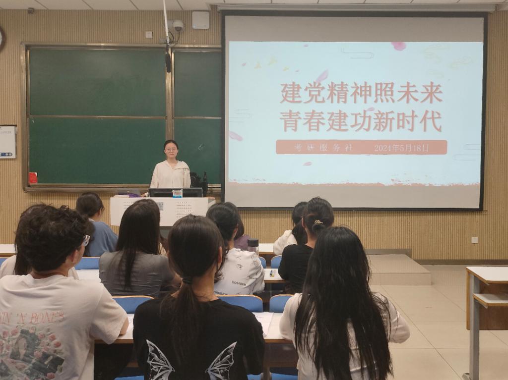 为深入贯彻学习党的光辉历史和伟大精神,引导社团成员了解其思想内涵并积极承担责任,坚定理想信念、砥砺前行,5月18日晚上,考研服务社于社科楼515召开了“建党精神照未来,青春建工新时代”主题团课活动。本次团课由冀艺婷主持,考研服务社全体社员参加。