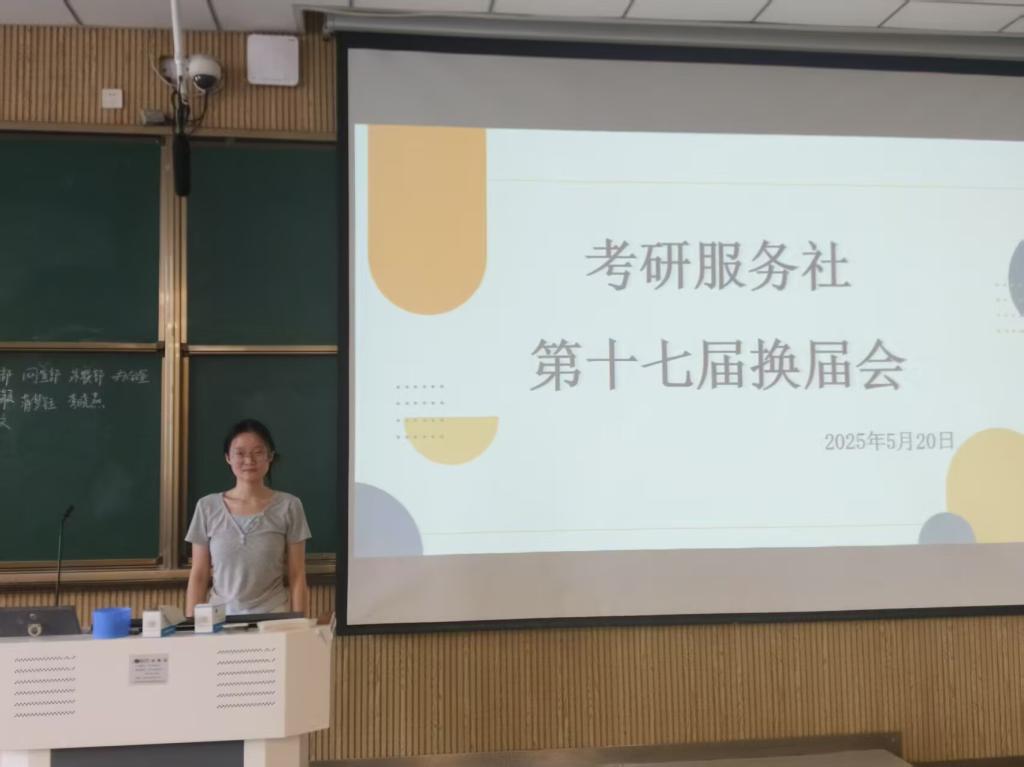 岁月不居,时节如流。随着毕业季的到来,考研服务社于5月20号在社科楼515成功举行第十七届换届大会。大会由社长丁文倩主持,全体社团干事共同参与。