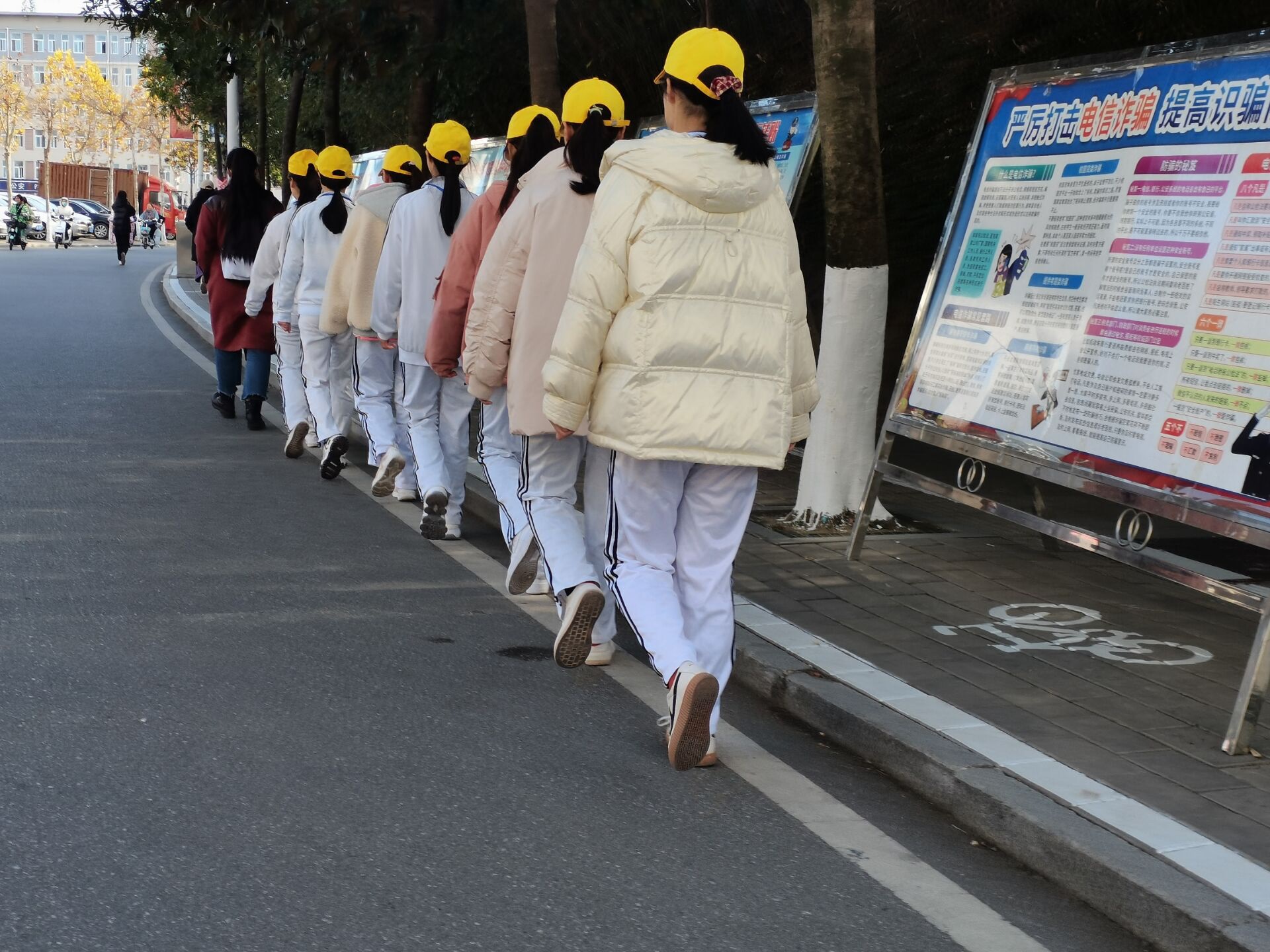 像往常一样,全体队员在社科楼下集合并自觉整理着装、队牌,白色的队服外也套上了温暖的棉服。接着,由组织部部长进行点名,12点30分准时从社科楼出发前往执勤点。在执勤途中,路遇世界艾滋病日宣传者,在寒风中,他们与小队成员擦肩而过、相互致意,而后沿着各自的道路继续着当天的工作。最后,环保志愿服务队队长照常对此次执勤活动进行总结,对队员每一次的进步表示肯定,给予鼓励。