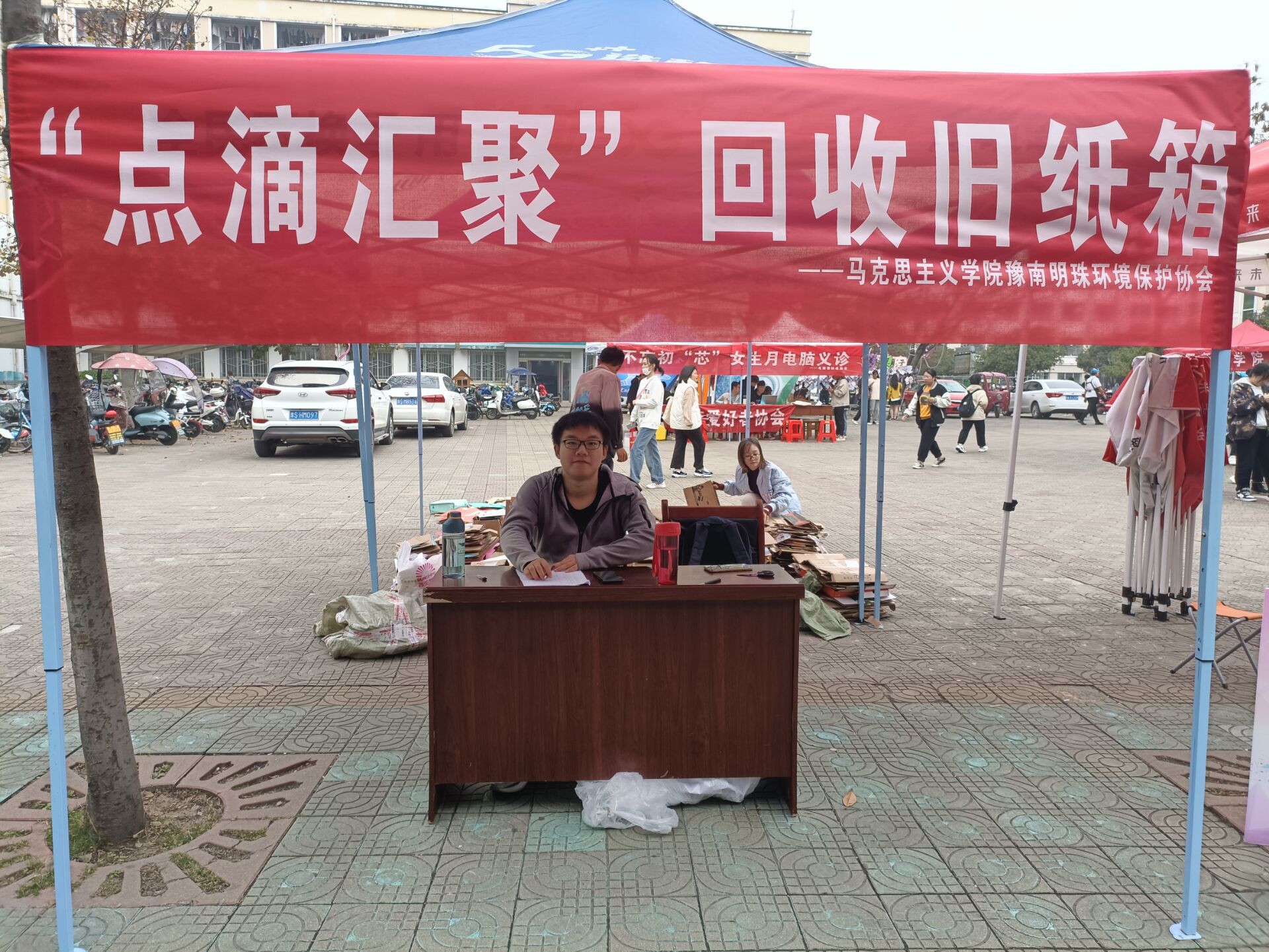 为贯彻落实节约资源和环境保护的基本国策,提高老员工对于废旧物品的再利用意识,11月6日至8日,豫南明珠环境保护协会在八餐广场举行“点滴汇聚,爱心共筑”回收旧纸箱活动。