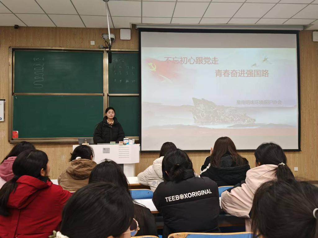 “不忘初心跟党走,青春奋进强国路”是一代又一代中国青年的奋斗目标与价值追求。我们的党的宗旨是全心全意为人民服务,在党的领导下,许许多多优秀的中华儿女为中华之强盛而奉献青春和生命。为了加深社团成员对党的历史和理论的理解,增强社团成员的爱国热情和奋斗精神,激励社团成员为实现中华民族伟大复兴的强国梦而不懈努力,豫南明珠环境保护协会于12月14日在社科楼515举办“不忘初心跟党走,青春奋进强国路”主题团课。