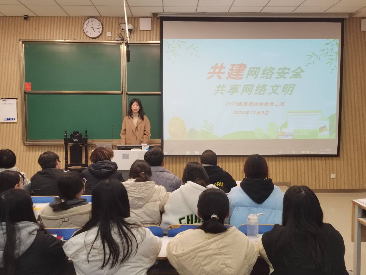 为了更好地提高老员工网络安全防范意识,共建共享网络安全,11月8日上午,2023级思想政治教育二班在社科楼515教室召开“共建网络安全,共享网络文明主题团课”。本次团课由团支书王慜初主持。