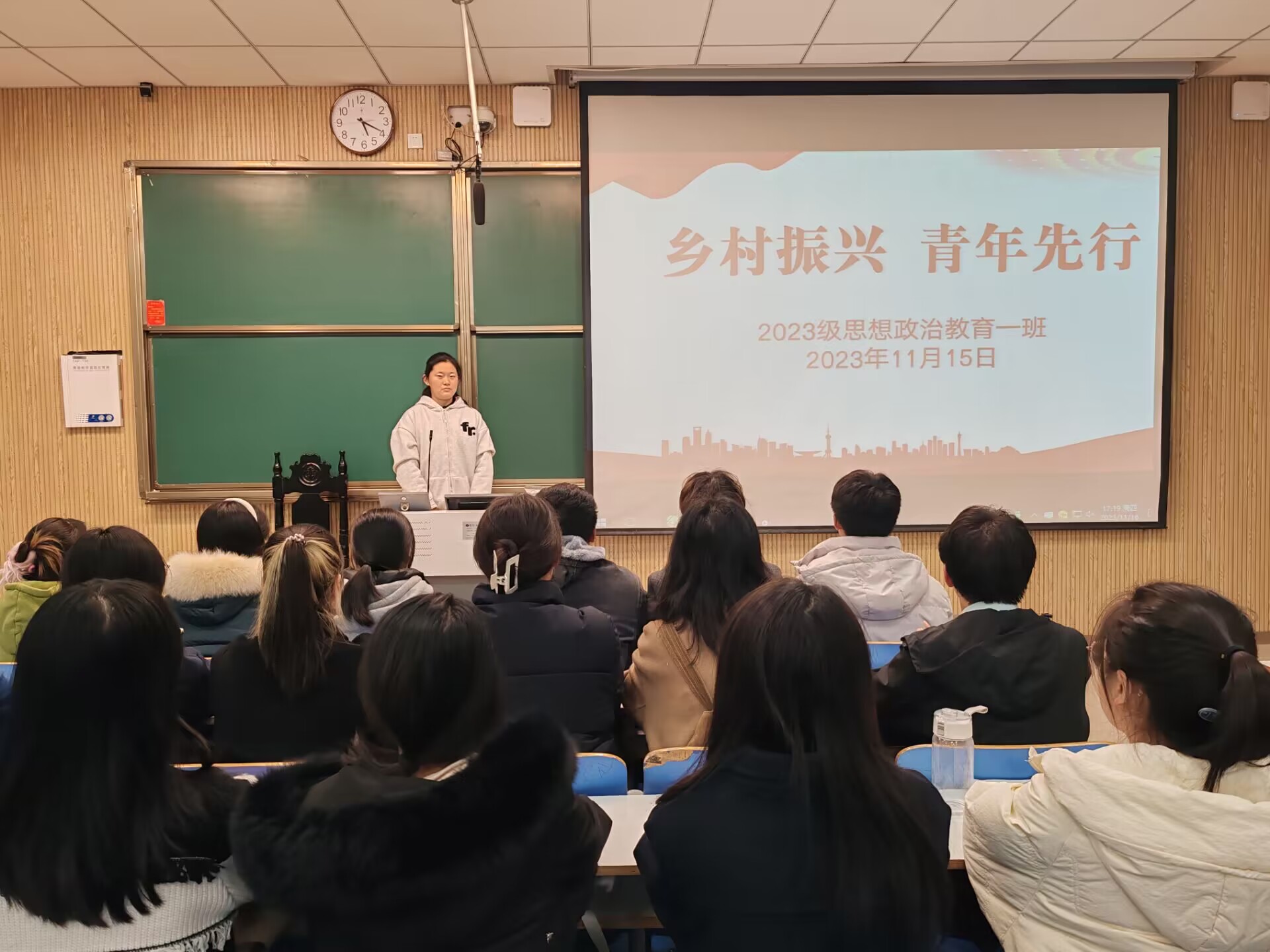 11月15日下午,2023级思想政治教育一班在社科楼515教室召开“乡村振兴,青年先行”主题团课。公司2023级思想政治教育一班全体成员参与本次团课,团课由团支书张卓主持。