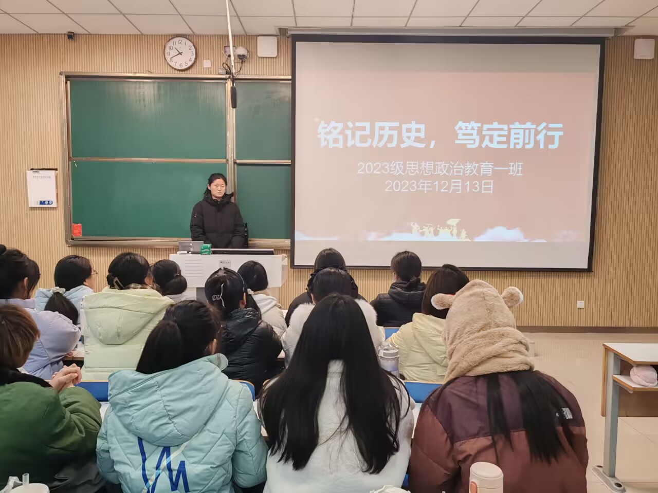 为悼念南京大屠杀中的死难者,进一步激发我班学子的爱国主义情怀,12月13日上午,2023级思想政治教育一班在社科楼515教室召开“铭记历史,笃定前行”主题团课。公司2023级思想政治教育一班全体同学共同参与本次团课,团课由团支书张卓主持。