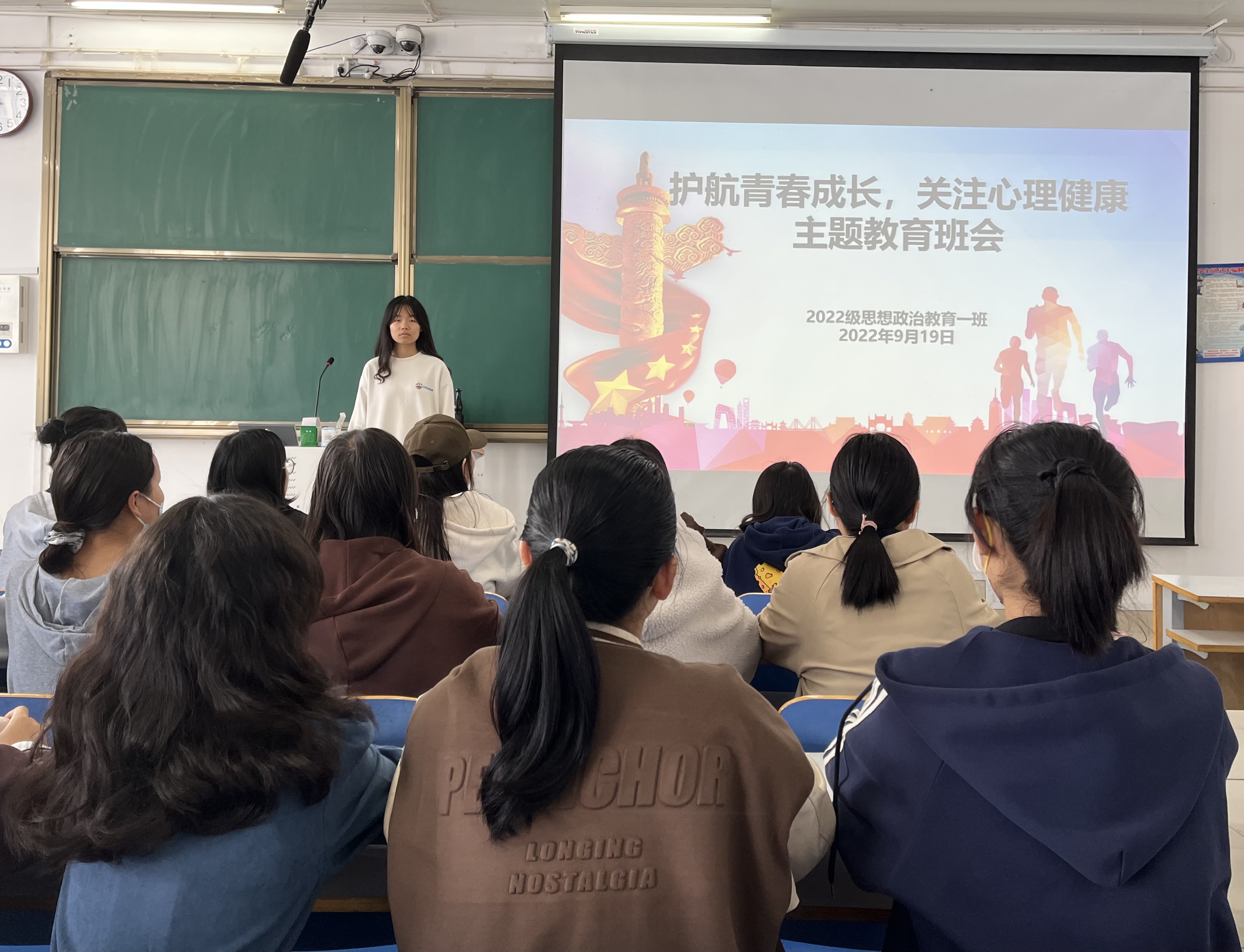 为普及心理健康知识,提升同学们的心理素质,10月24日下午,2022级思想政治教育一班在社科楼514教室召开“护航青春成长,关注心理健康”主题班会。2022级思想政治教育一班全体同学参与本次班会,班会由劳动委员孙怡果主持。