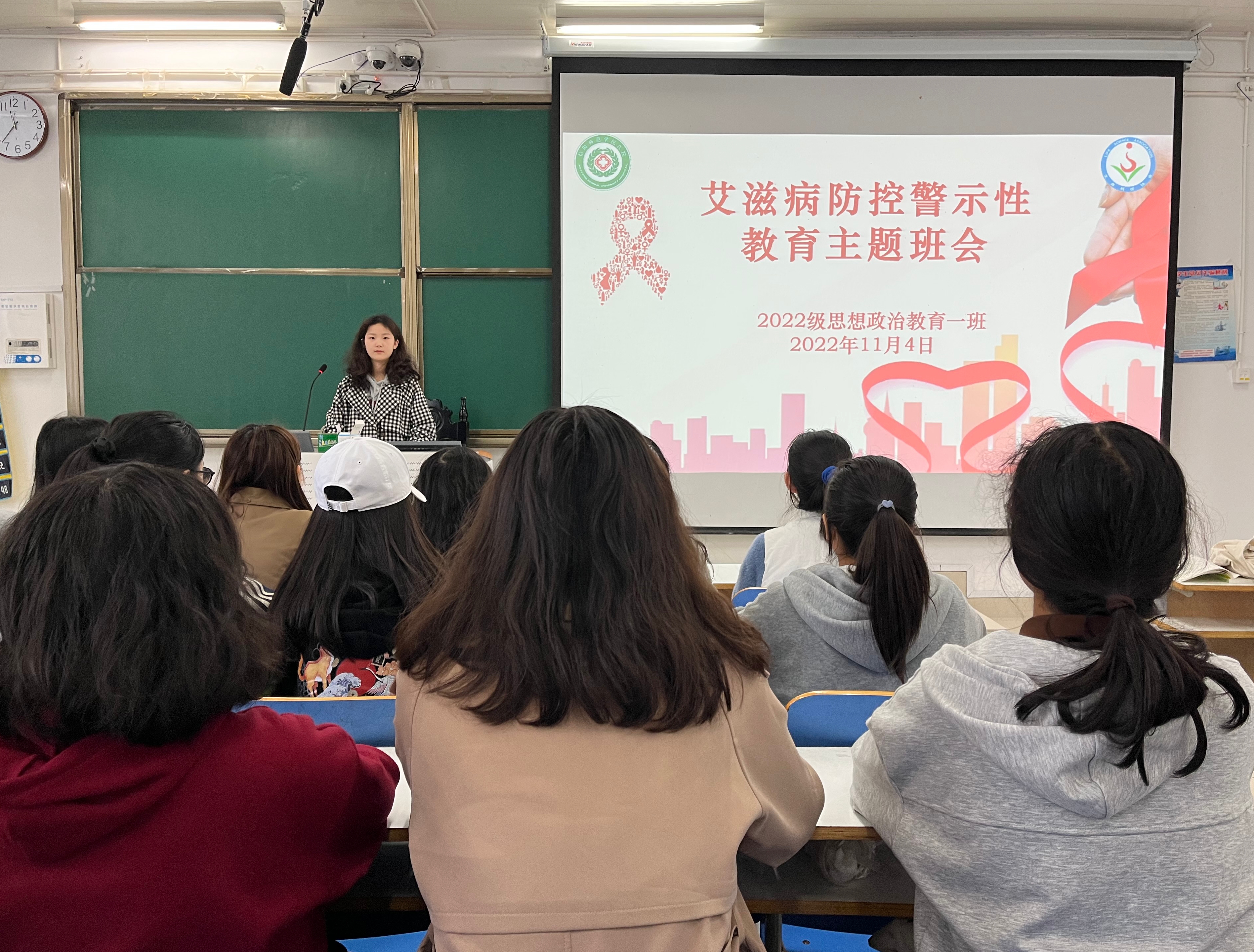 为宣传艾滋病预防知识,增强同学们的防护意识,11月4日下午,2022级思想政治教育一班在社科楼514教室召开“艾滋病防控警示性教育”主题班会,思想政治教育一班全体同学参与本次班会,班会由团支书李佳茹主持。