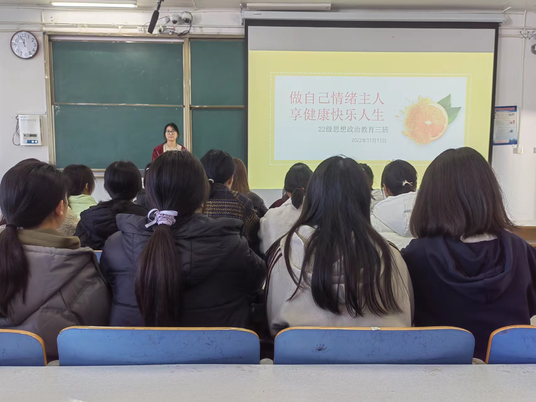 为进一步提高老员工心理素质,促进身心健康,11月13日上午,2022级思想政治教育三班在社科楼514教室召开“做自己情绪主人,享健康快乐人生”主题班会。公司2022级思想政治教育三班全体成员共同参加班会,班会由心理委员张韶涵主持。