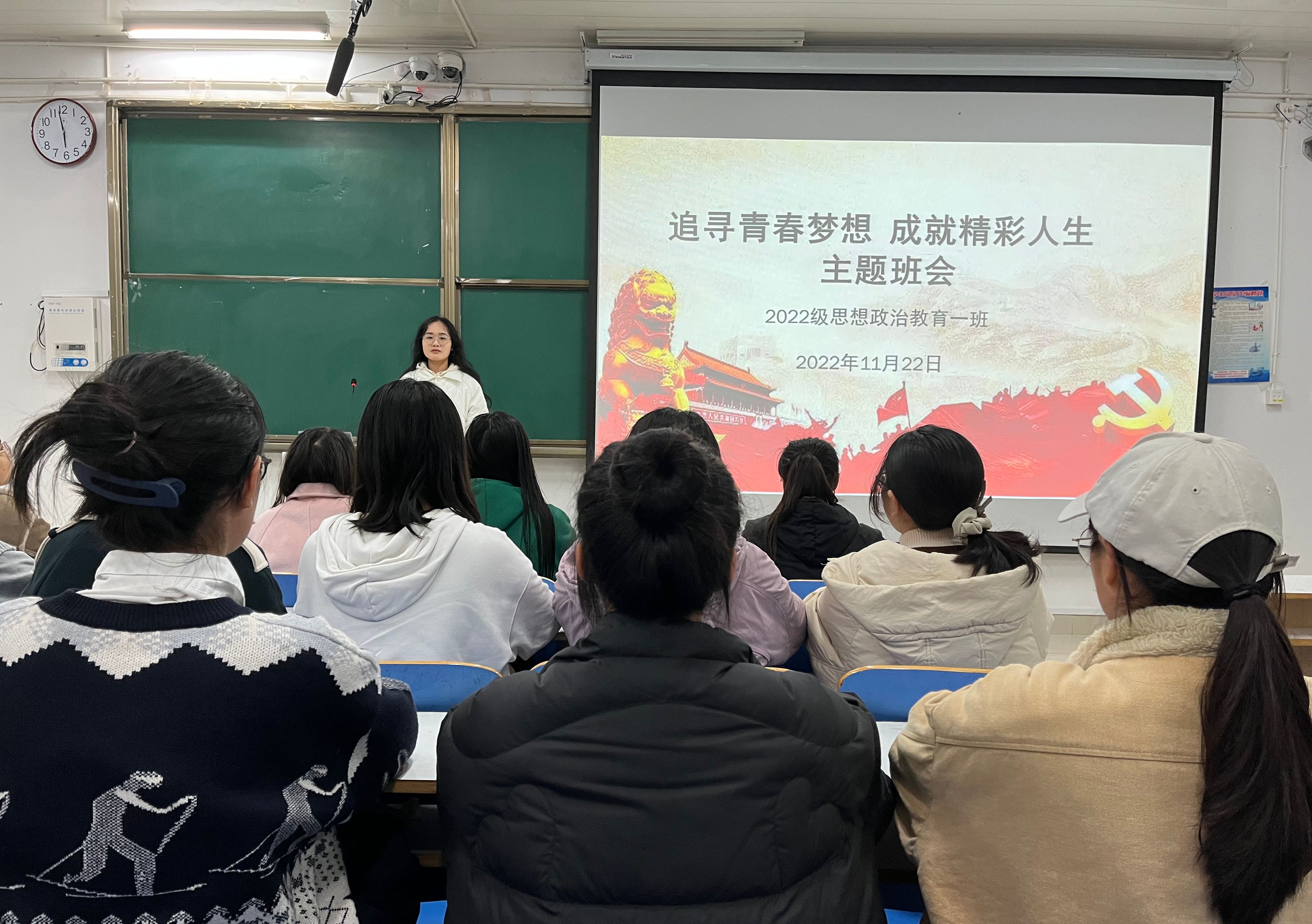 为帮助同学们确立人生目标,实现远大理想,11月22日下午,2022级思想政治教育一班在社科楼514教室召开“追寻青春梦想,成就精彩人生”主题班会。2022级思想政治教育一班全体同学参与本次班会,班会由学习委员司露主持。