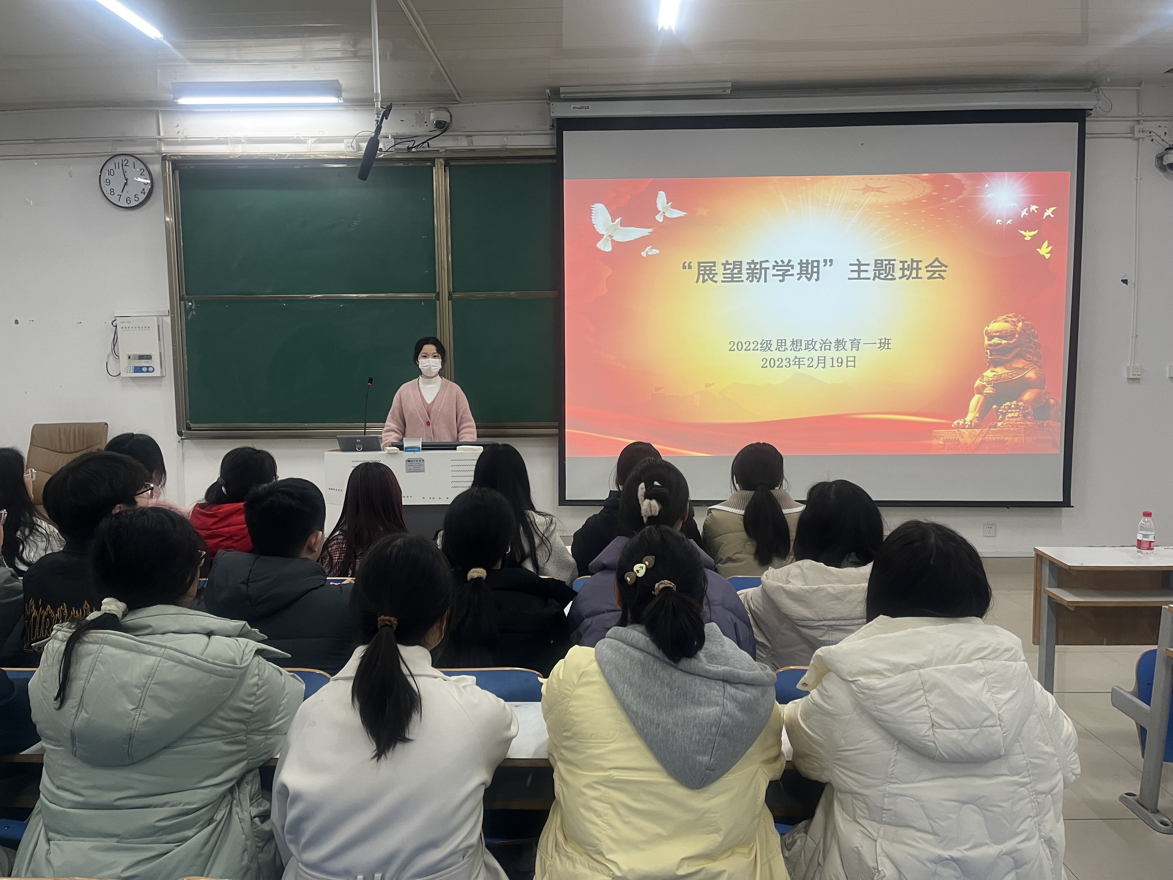 为更好地迎接新学期的到来,顺利开展各项工作,2月19日下午,2022级思想政治教育一班在社科楼514教室召开“展望新学期”主题班会。2022级思想政治教育一班全体同学参与班会,班会由团支书李佳茹主持。