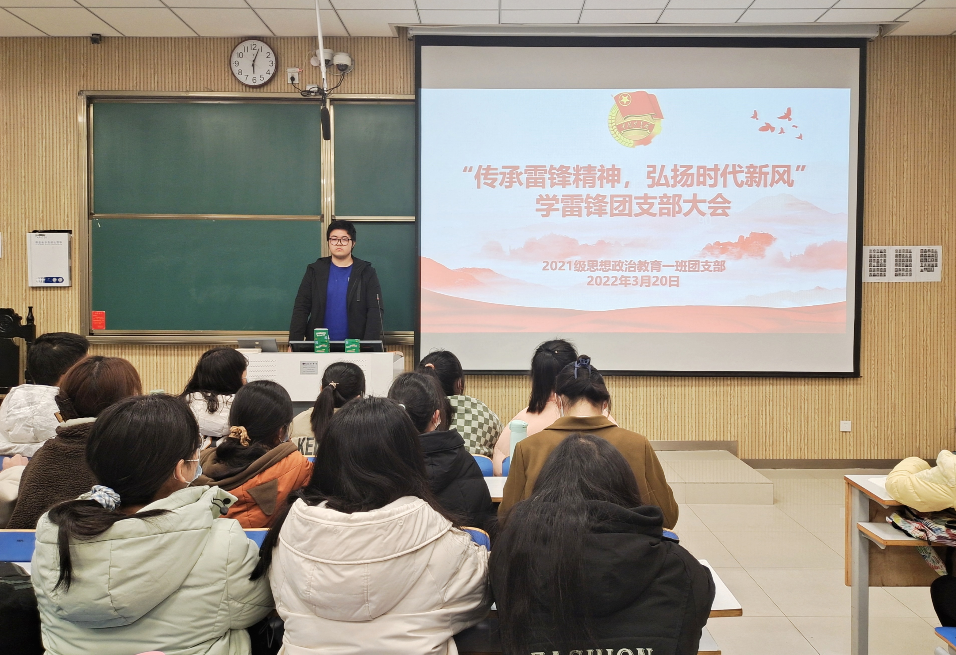 3月20日下午,2021级思想政治教育一班在社科楼515教室召开“传承雷锋精神,弘扬时代新风”学雷锋团支部大会。2021级思想政治教育一班全体团员共同参加了本次会议。会议由团支书戴翰林主持。