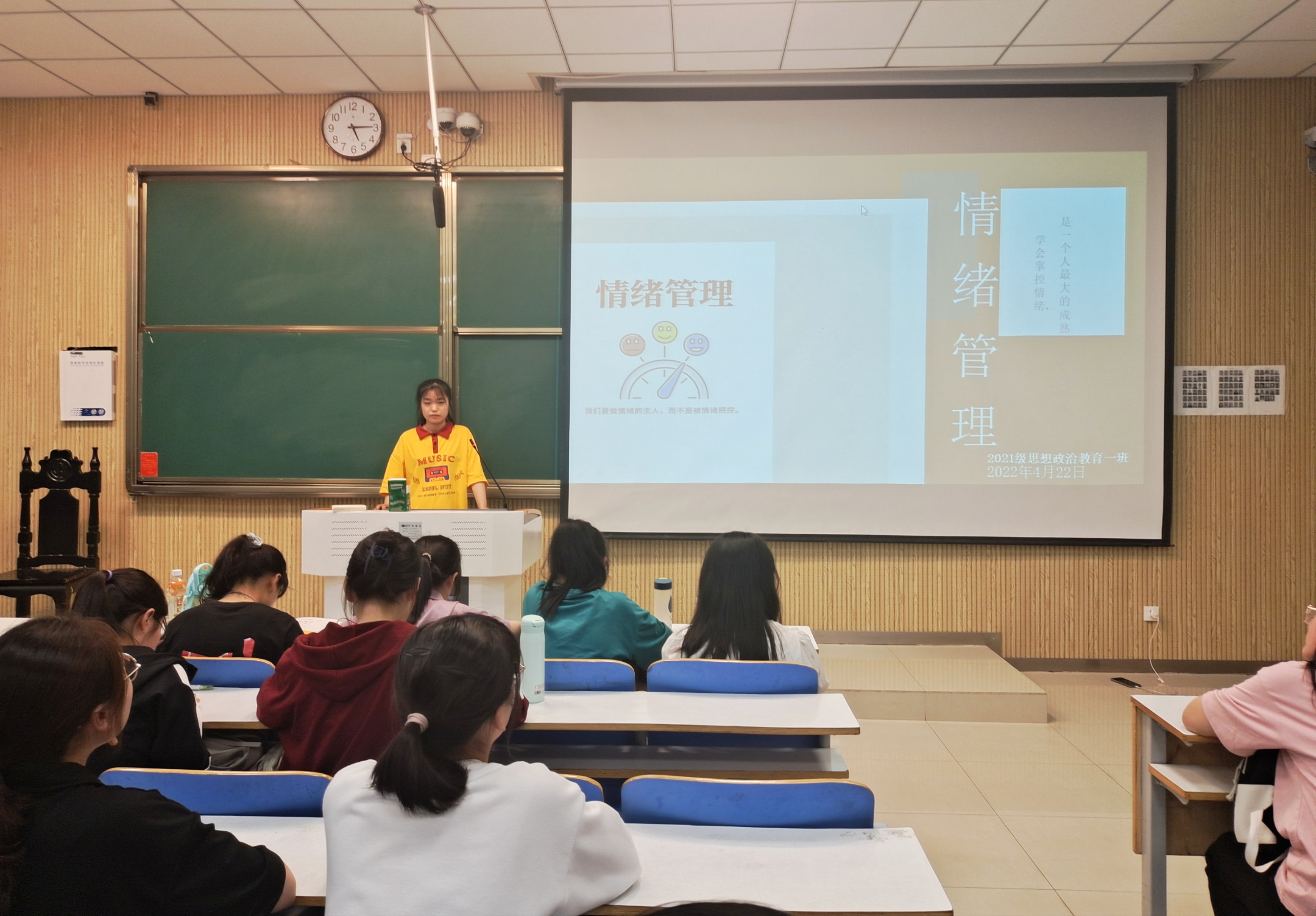 4月22日下午,2021级思想政治教育一班在社科楼515教室召开“情绪管理”主题班会。2021级思想政治教育一班全体成员参加了本次班会。班会由心理委员黄小妍主持。