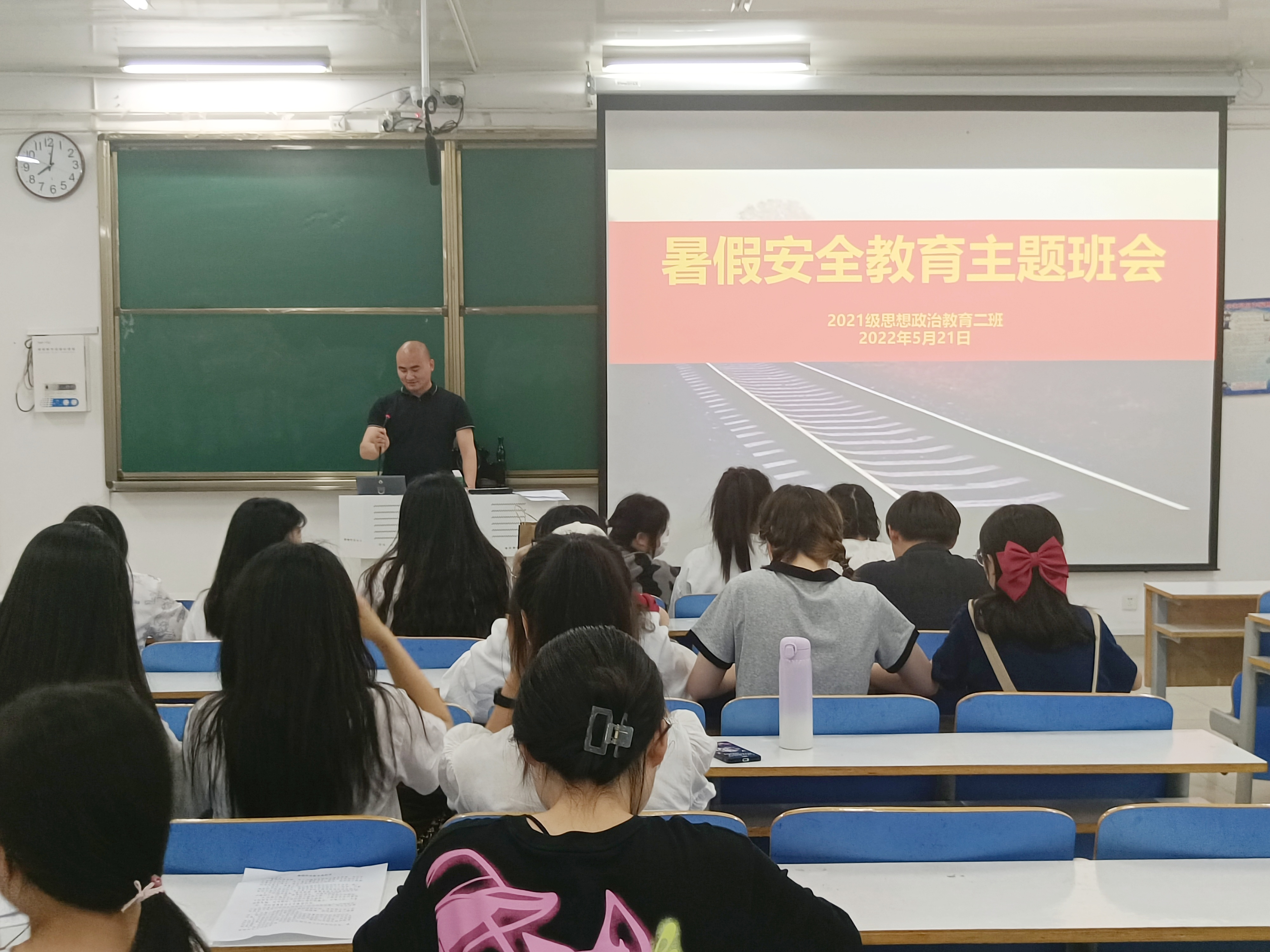 5月21日下午,2021级思想政治教育二班在社科楼514教室召开暑假安全教育主题班会。辅导员周文豪及2021级思想政治教育二班全体同学参加此次班会。班会由辅导员周文豪主持。