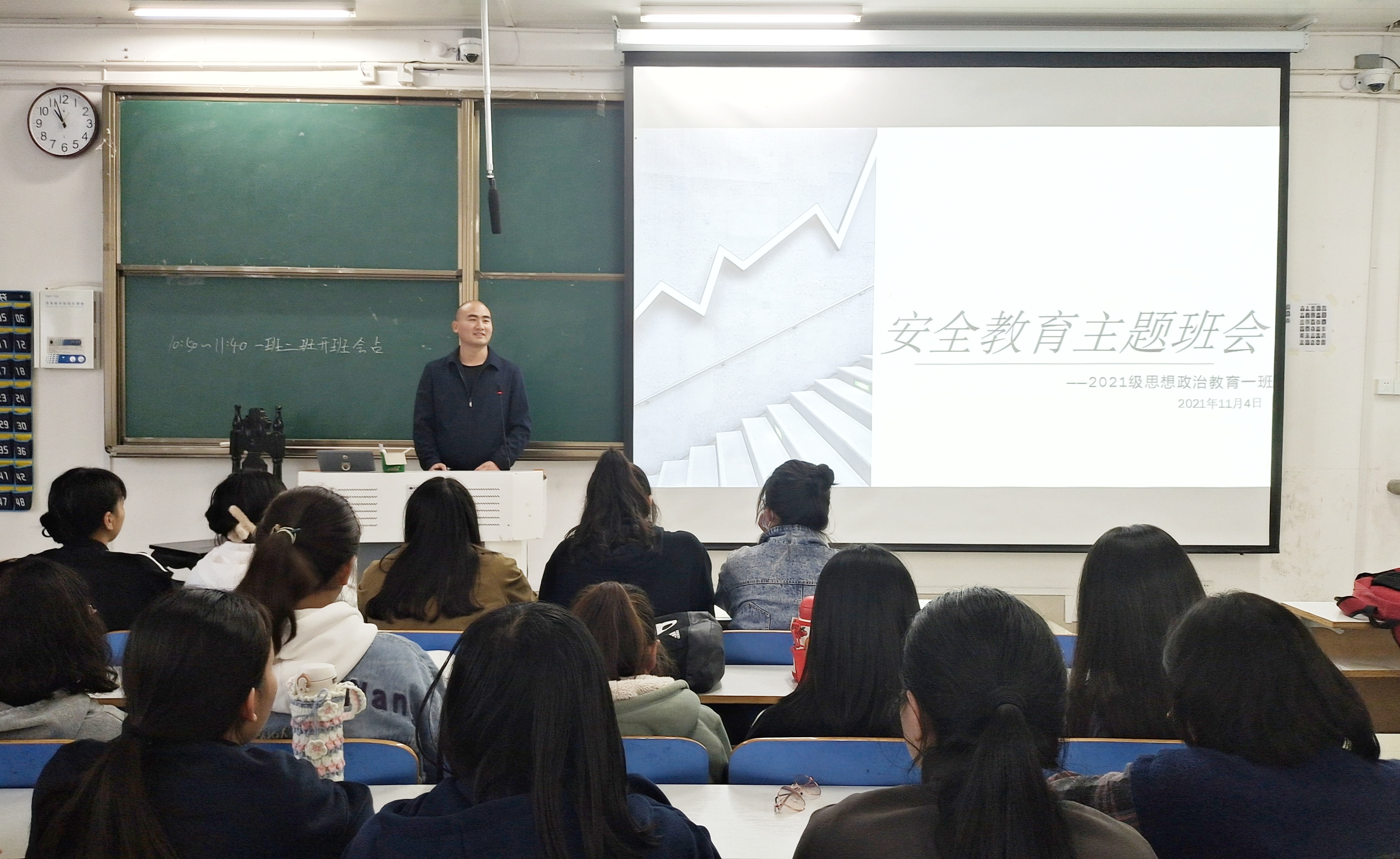 为进一步维护校园安全 ,加强员工安全意识。11月4日上午,2021级思想政治教育一班、二班在社科楼516顺利开展安全教育主题班会。辅导员周文豪以及2021级思想政治教育一班、二班全体同学共同参与此次班会,班会由周文豪主持。