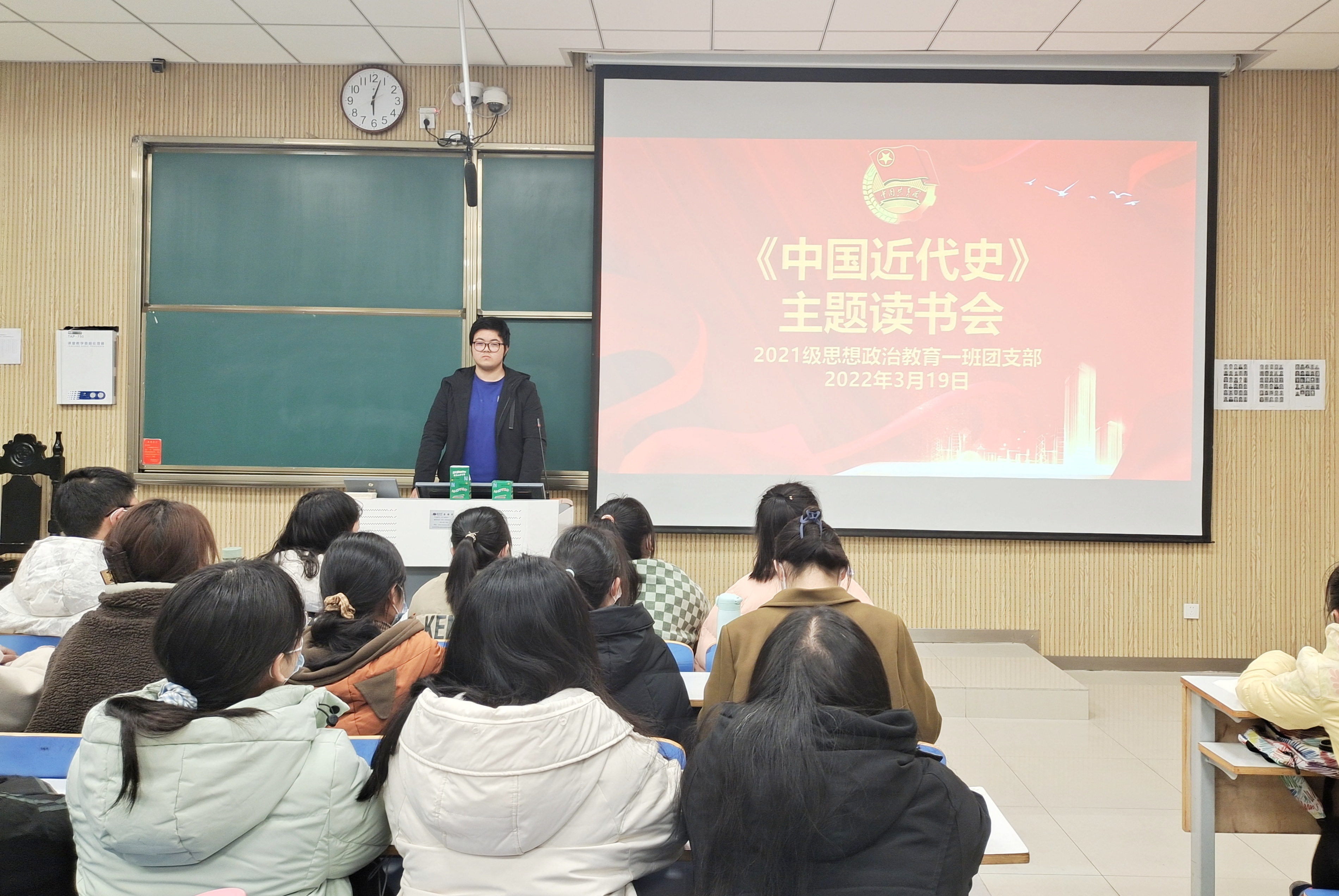 3月19日下午,2021级思想政治教育一班在社科515教室举办《中国近代史》主题读书会。2021级思想政治教育一班全体成员参加了本次读书会。读书会由团支书戴翰林主持。