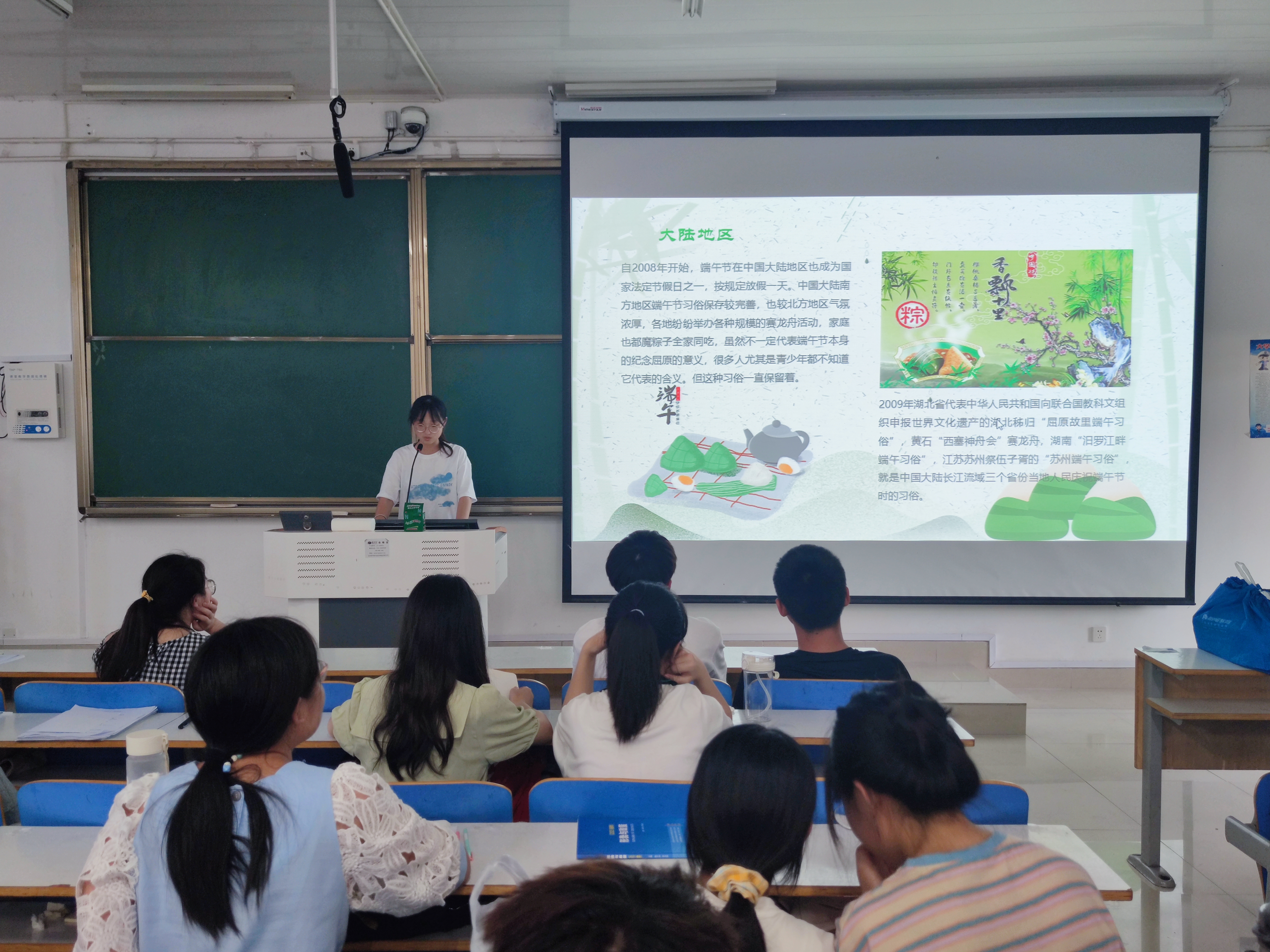 6月15日下午,2020级思想政治教育一班在社科楼514教室顺利开展“粽情端午”主题团课。辅导员曹栋及2020级思想政治教育一班全体同学参加本次团课,团课由宣传委员曹佳颖主持。