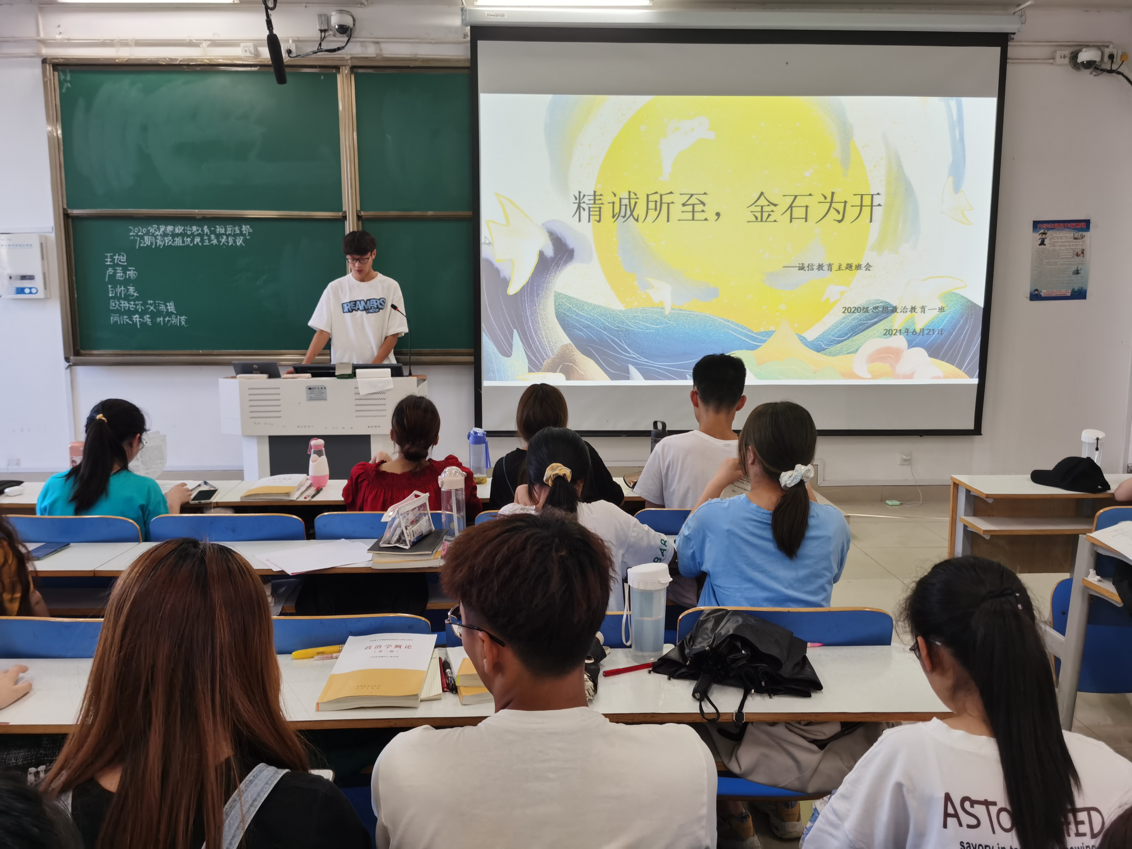 为响应公司员工资助管理中心号召,6月21日下午,2020级思想政治教育一班在社科楼514教室顺利开展“精诚所至,金石为开”诚信教育主题班会。班会由副班长白帅豪主持。