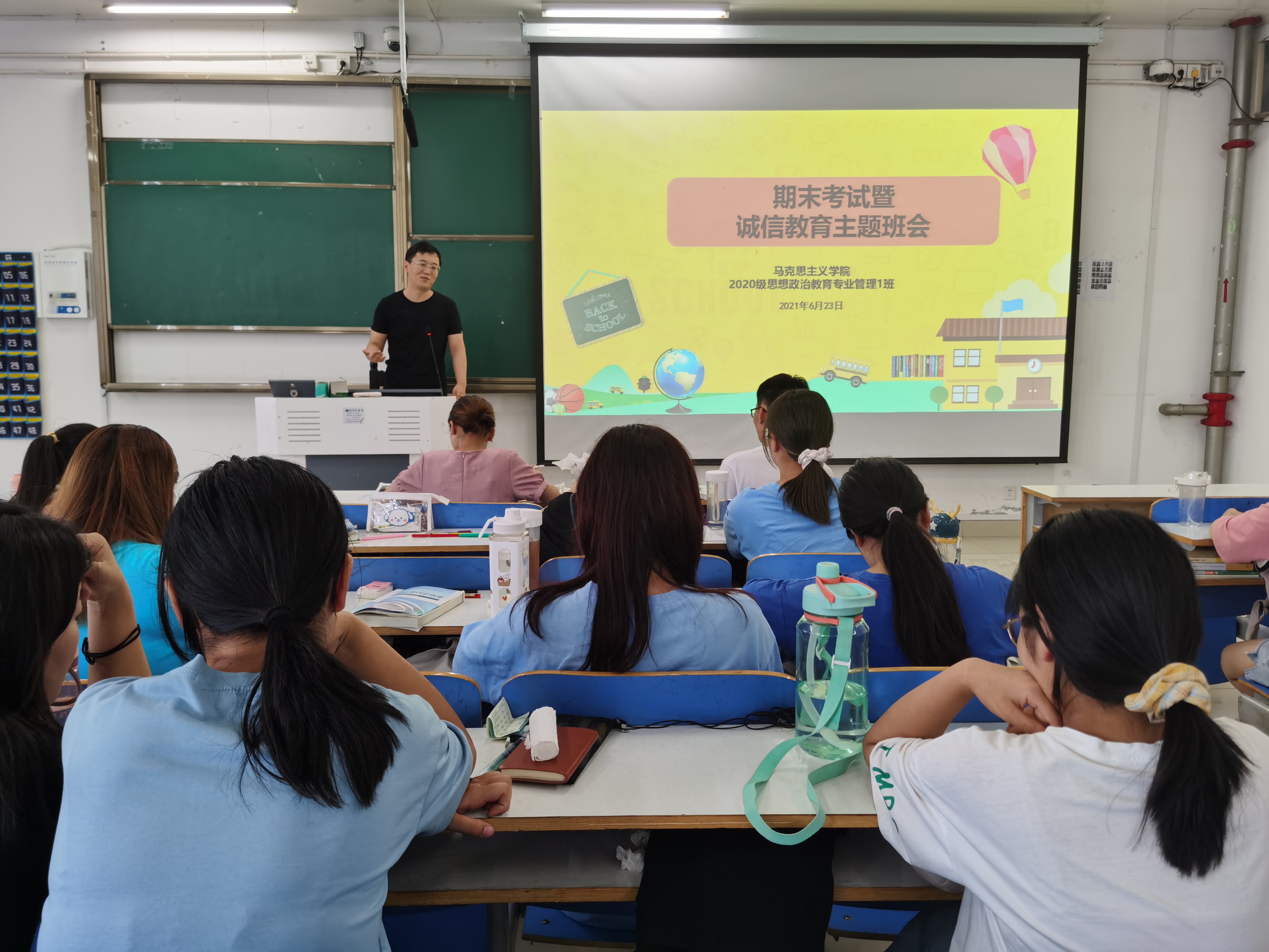 为加强学风建设,严肃考风考纪,6月23日下午,2020级思想政治教育一班在社科楼516教室召开期末考试暨诚信教育主题班会。辅导员曹栋及2020级思想政治教育一班全体同学参加了本次班会,班会由辅导员曹栋主持。