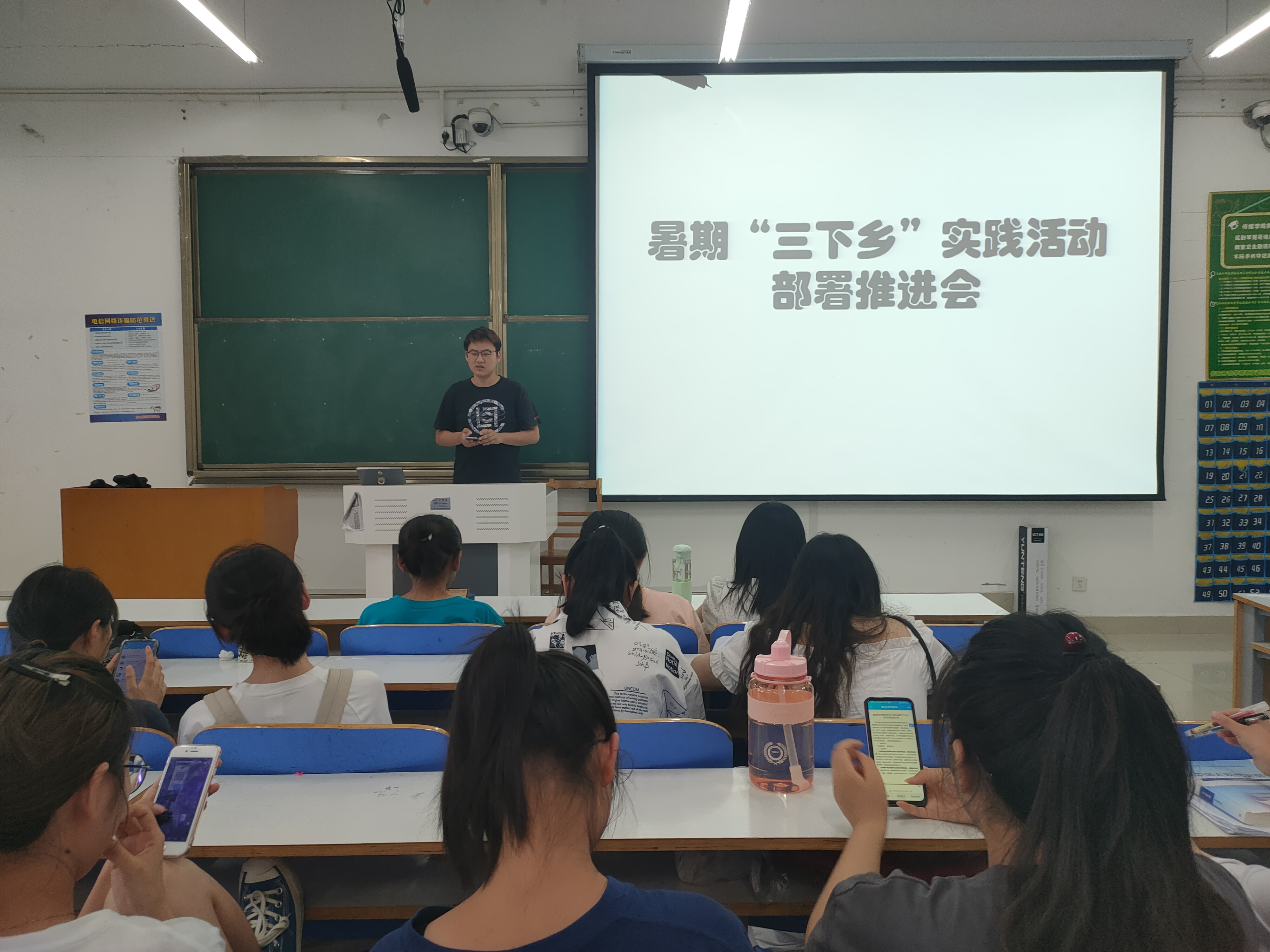 会议伊始,班长朱紫峰向同学们介绍了老员工暑假"三下乡"社会实践活动的具体项目及其原则,他强调,要把实地实践观察与思想认识提升相结合,突出活动导向性。接着,朱紫峰具体讲述了各个项目的主要内容,列举了党史学习实践团、理论宣讲实践团、国情观察实践团等社会实践活动团体。随后,朱紫峰根据同学们在各个地区的分布情况引导同学们自行结合进行分组,并要求各组及时填写申请书且及时上交。同学们纷纷积极分组参加此次暑期"三下乡"社会实践活动。