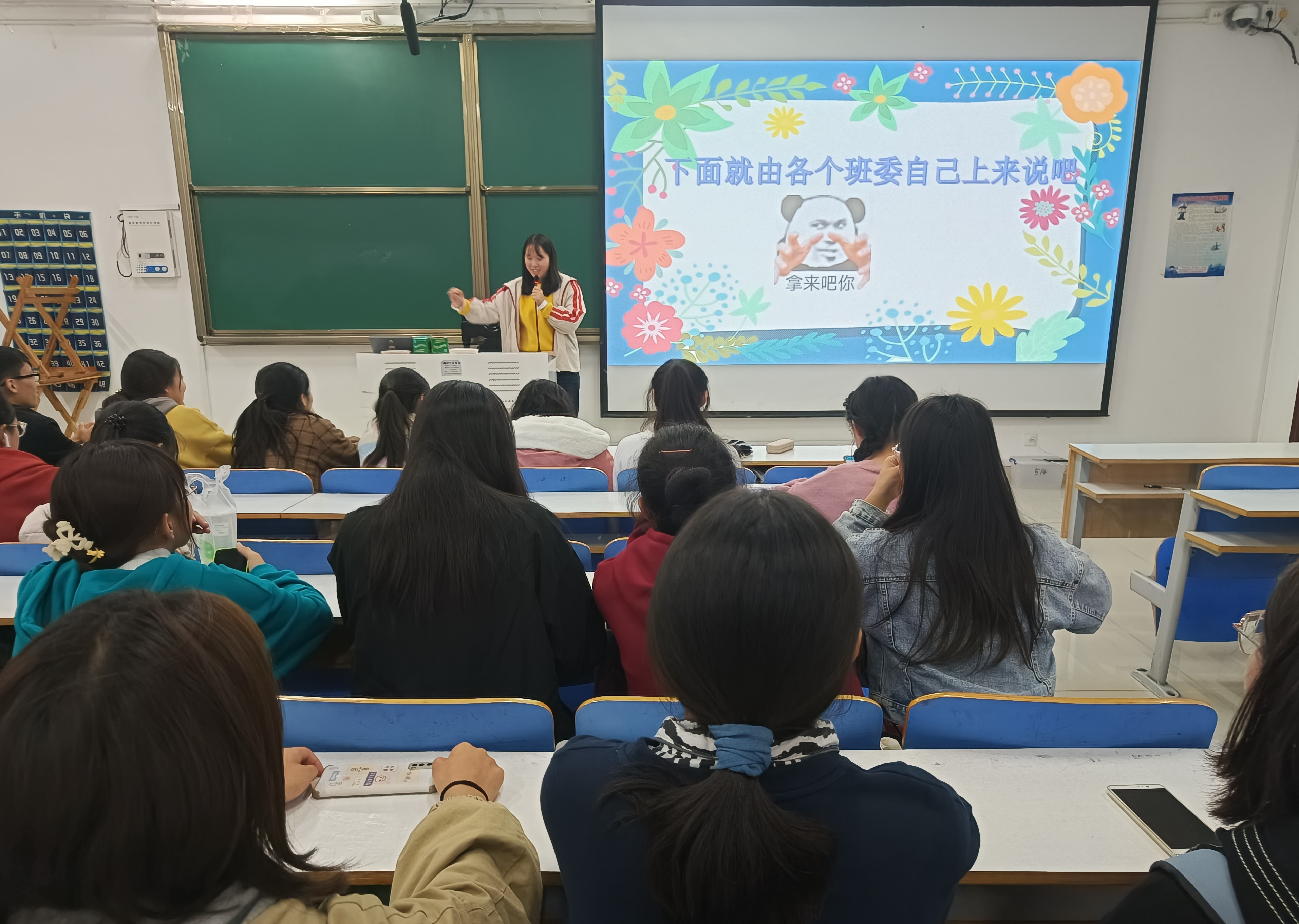 为使同学们更加了解班委工作,同时促进班委间的团结协作,10月17日晚上,2021级思想政治教育二班班委工作汇报主题班会在社科楼514教室顺利召开。二班全体同学参与此次班会。会议由团支书王婧欣主持。