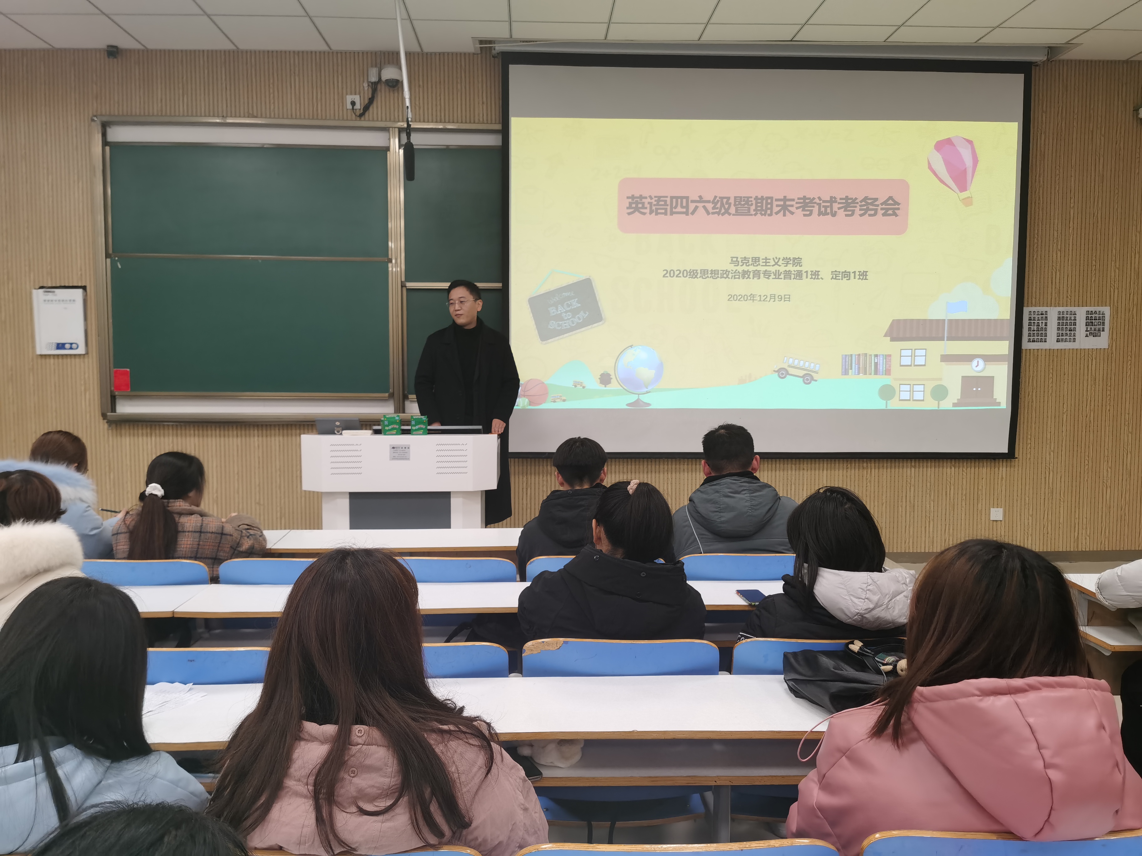 12月9日下午,2020级思想政治教育一班、定向一班在社科楼515教室顺利开展期末考试班级考务会,2020级思想政治教育一班、定向一班全体员工聆听了此次班会,班会由辅导员曹栋主持。