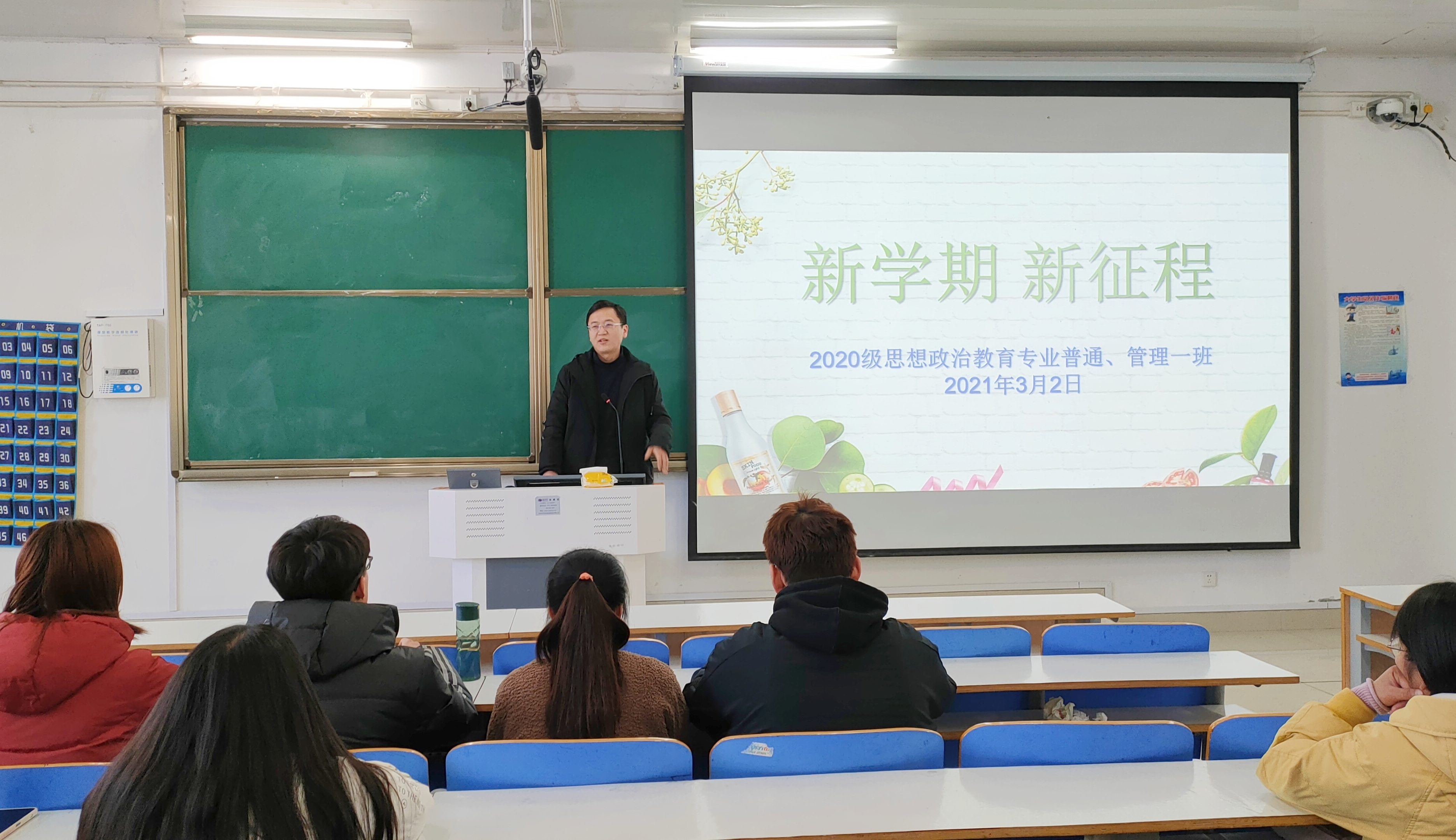 3月2日下午,2020级思想政治教育一班、定向一班在社科楼514教室顺利召开“新学期,新征程”主题班会,2020级思想政治教育一班、定向一班全体员工共同聆听了本次班会,班会由辅导员曹栋主持。