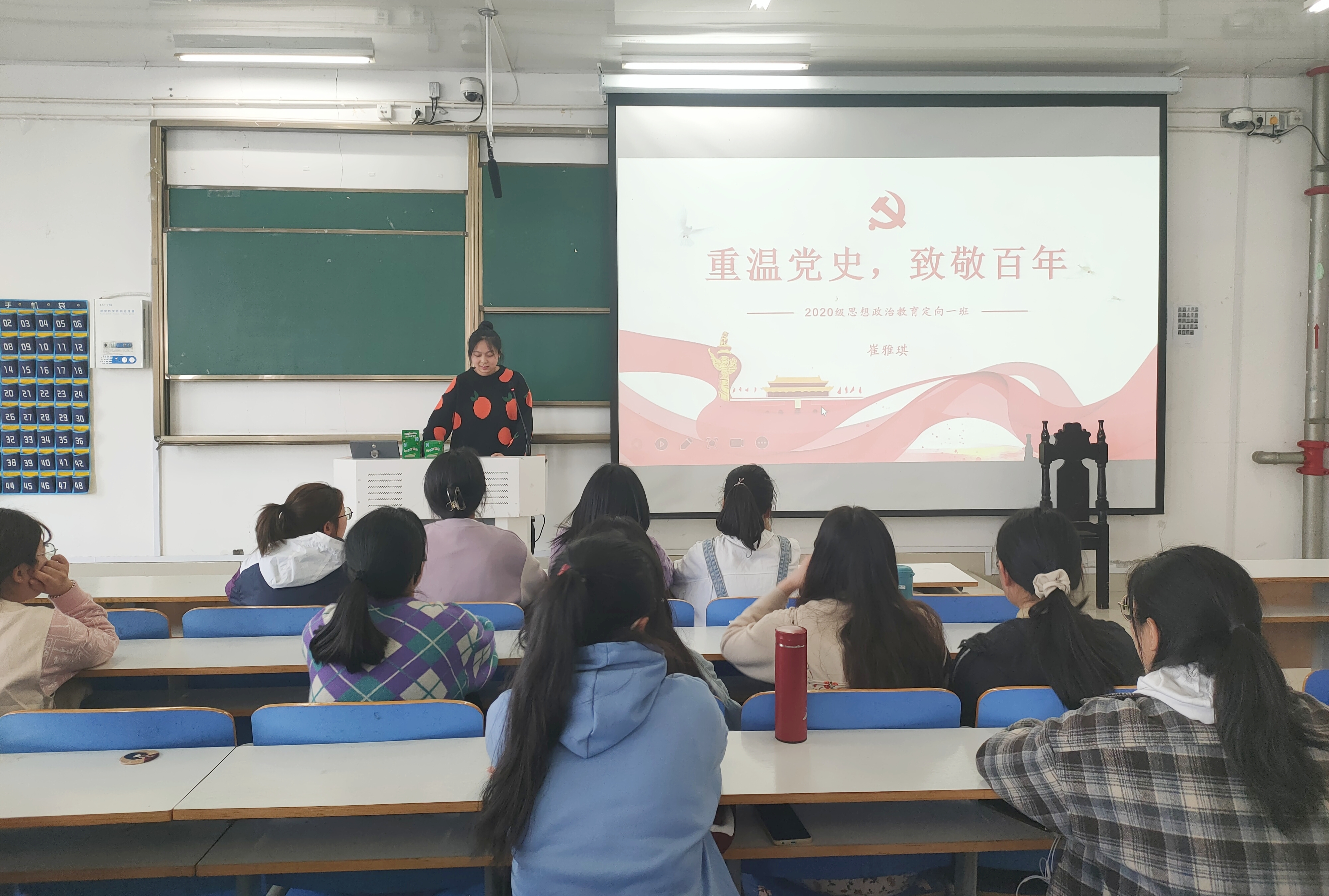 3月24日下午,2020级思想政治教育(定向)一班在社科楼516教室顺利举办“重温党史,致敬百年”团支部大会。定向一班全体员工聆听了此次会议,会议由劳动委员崔雅琪主持。
