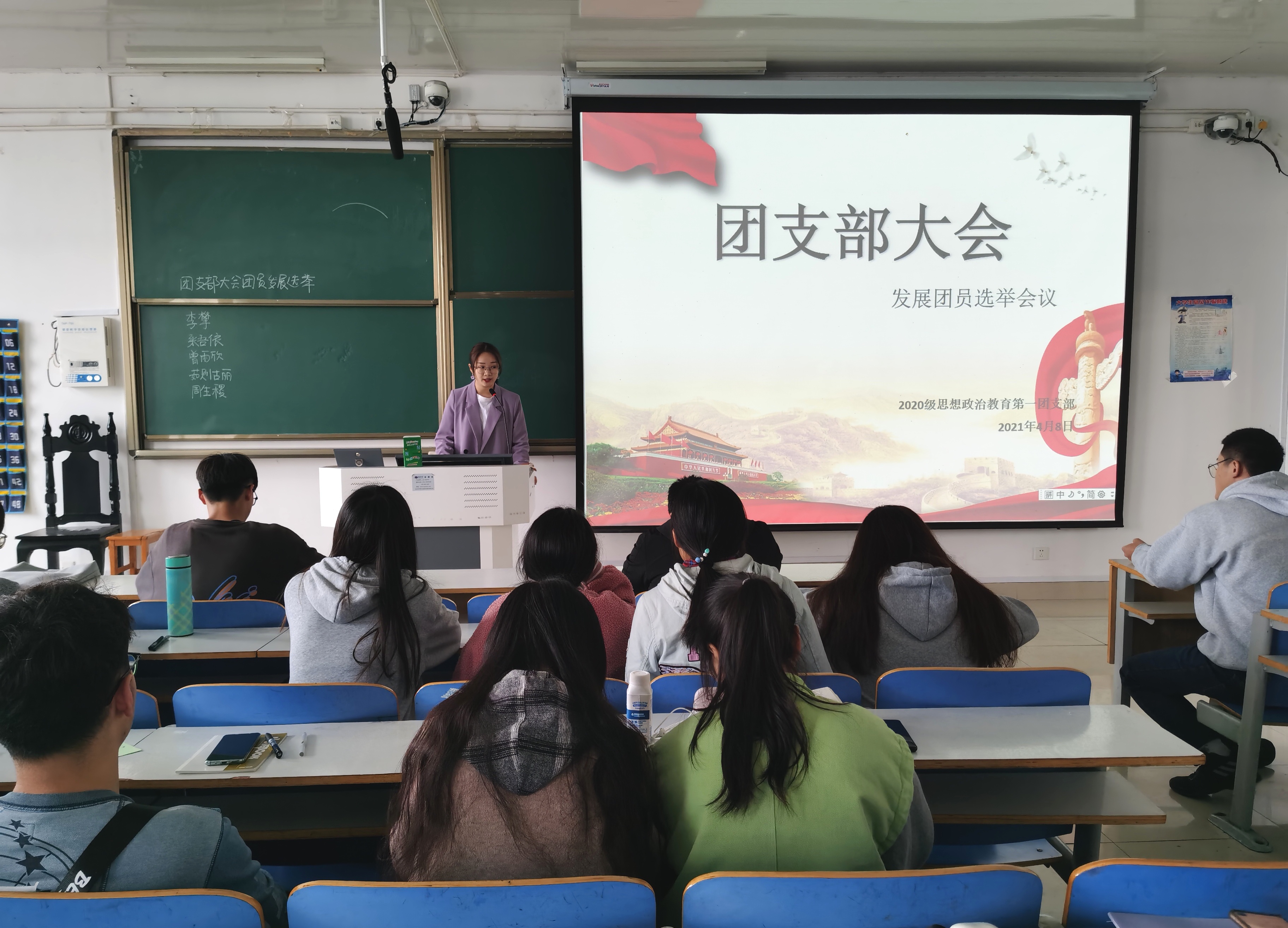4月8日上午,2020级思想政治教育一班在社科楼514教室召开“发展团员选举”团支部大会。2020级思想政治教育一班全体同学参加了本次团支部大会。大会由团支书卢茜雨主持。