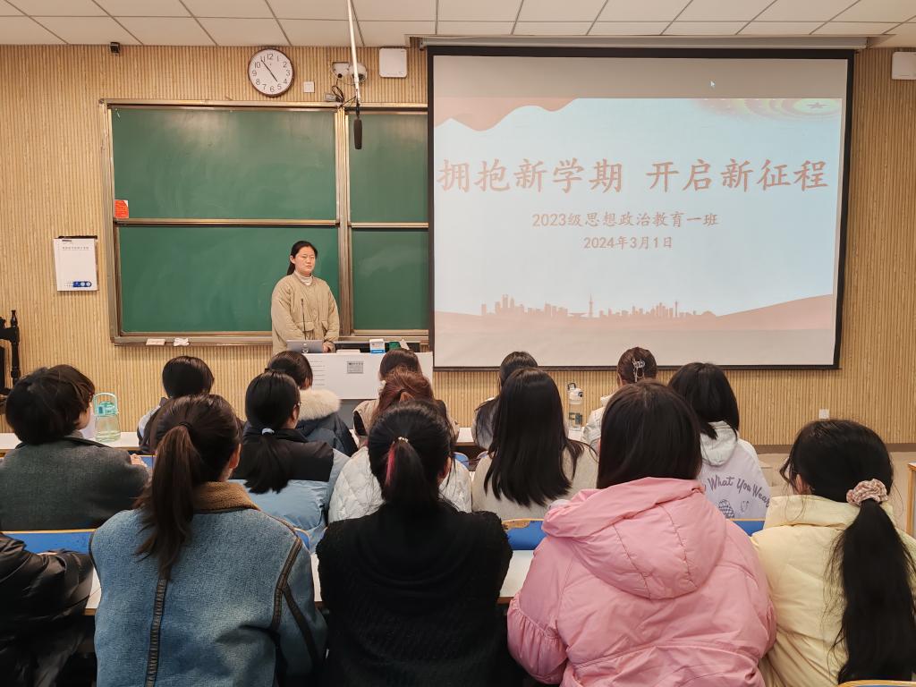 为更好地迎接新学期的到来,顺利开展各项工作,3月1日上午,XCSport2023级思想政治教育一班在社科楼515教室召开“拥抱新学期,开启新征程”主题班会。公司2023级思想政治教育一班全体同学共同参与本次班会,班会由团支书张卓主持。