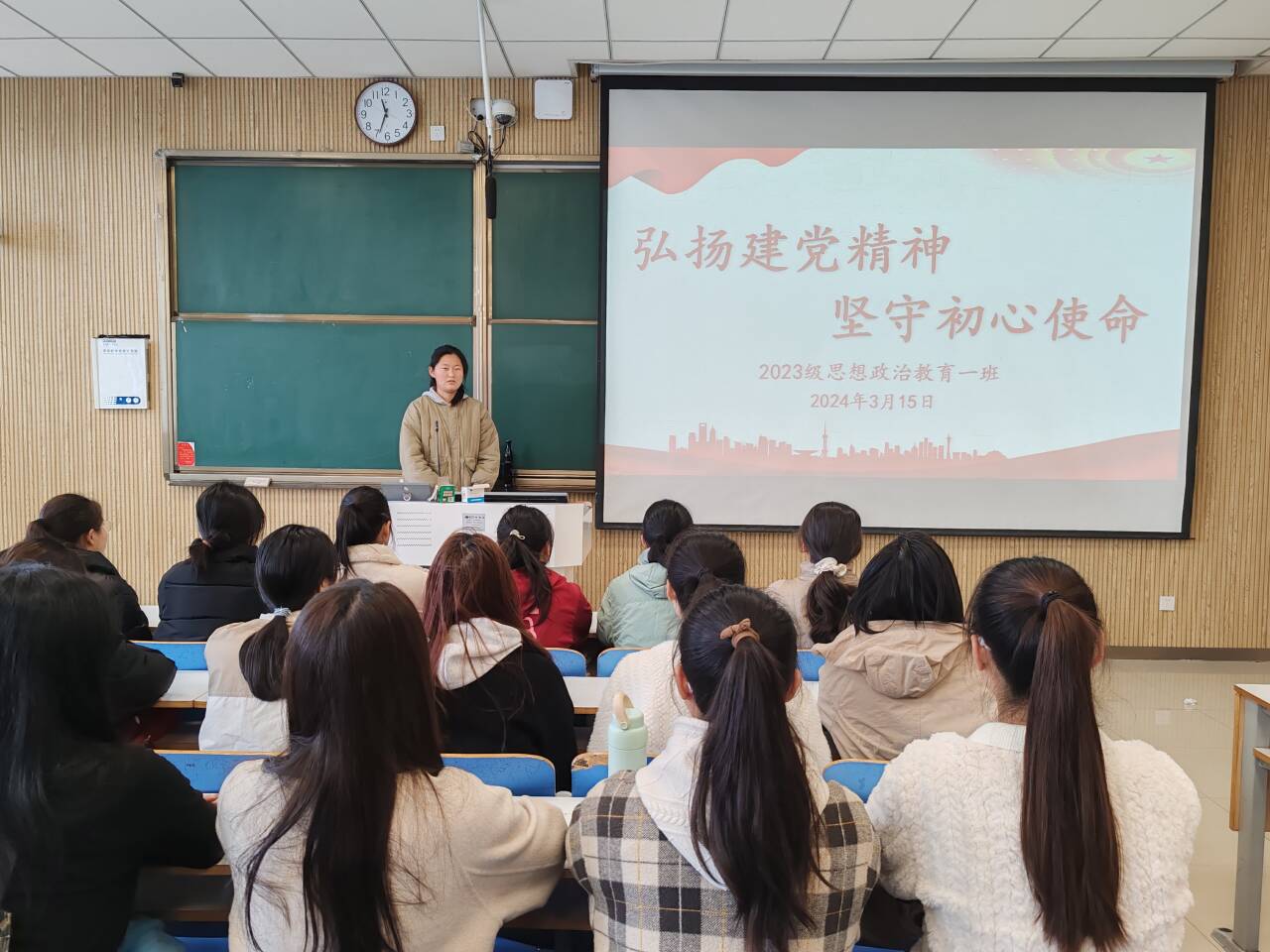 3月15日上午,XCSport2023级思想政治教育一班在社科楼515教室召开“弘扬建党精神,牢记初心使命”主题团课。公司2023级思想政治教育一班全体同学共同参与本次团课,团课由团支书张卓主持。