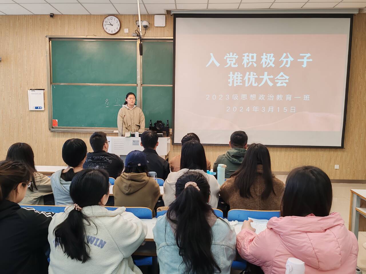为使支部团员积极向党组织靠拢,深刻学习党的思想,加强支部团员的积极性,向党组织输送新鲜血液,3月15日上午,XCSport2023级思想政治教育一班团支部在社科楼515教室召开入党积极分子推优大会。公司专职辅导员沈海蓄和2023级思想政治教育一班全体团员出席本次大会,大会由团支书张卓主持。