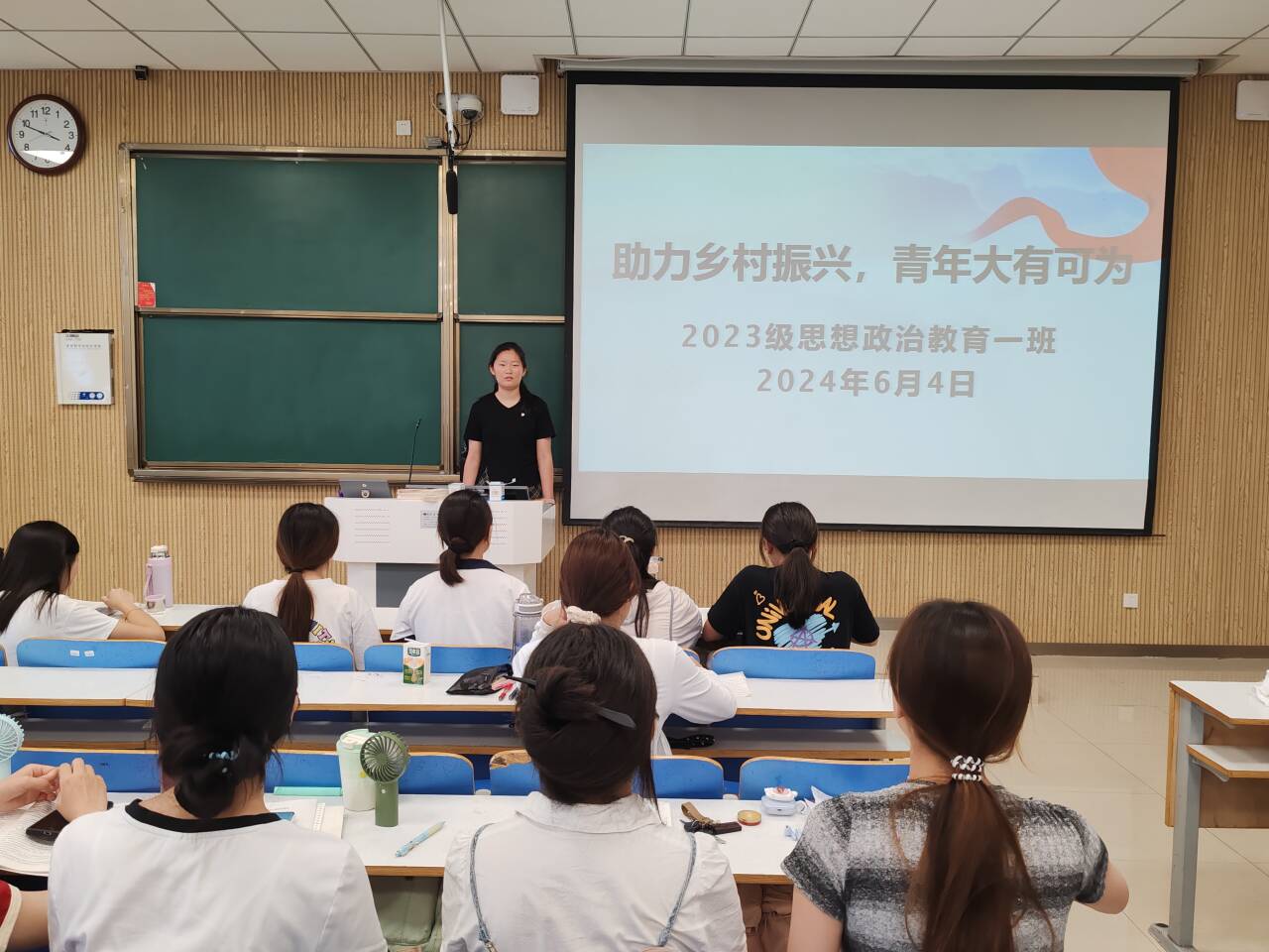 为落实立德树人,以劳育人的发展要求,6月4日下午,XCSport2023级思想政治教育一班在社科楼515教室召开“助力乡村振兴,青年大有可为”主题团课。公司2023级思想政治教育一班全体同学共同参与本次团课,团课由团支书张卓主持。