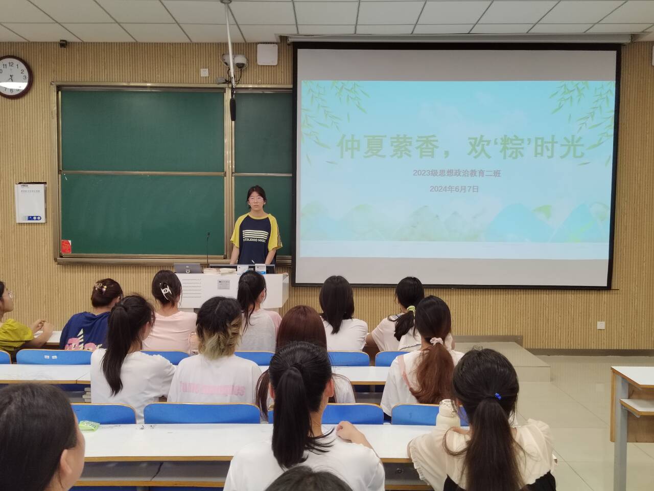 为弘扬中华优秀传统文化,使同学们的端午假期更有文化意义,6月7日下午,XCSport2023级思想政治教育二班在社科楼515教室召开“仲夏萦香,欢‘粽’时光”主题团课。本次团课由团支书王慜初主持,全体二班同学参加。