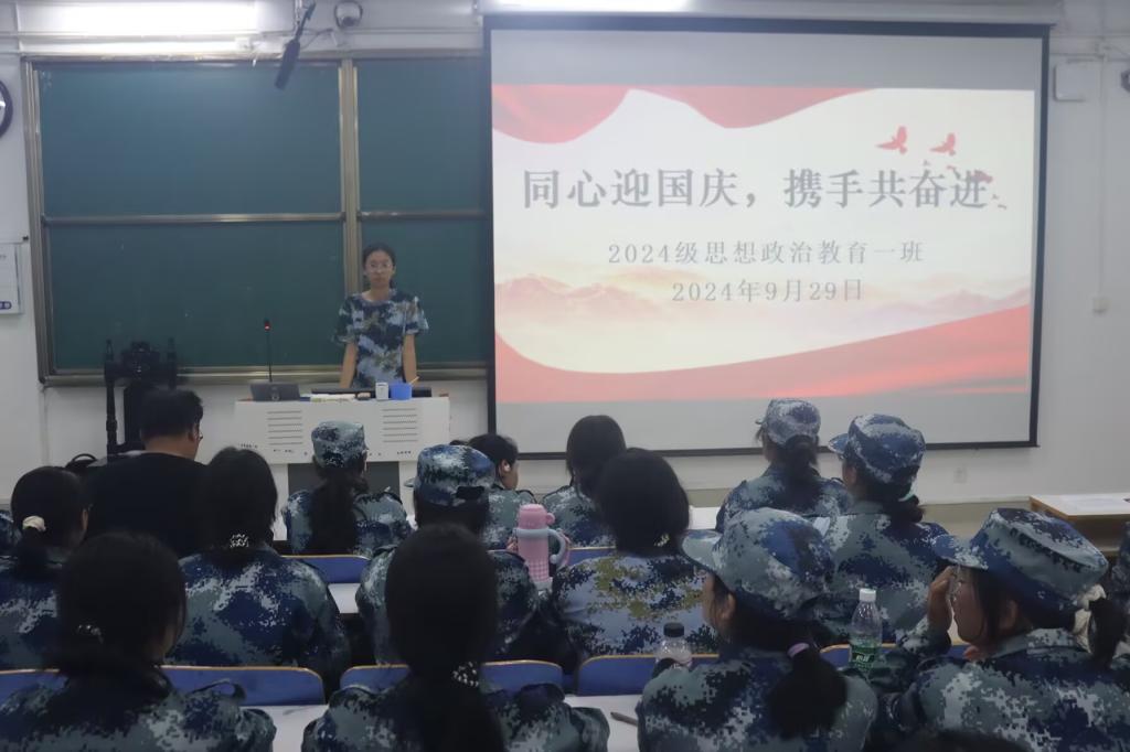 为了进一步激发广大青年的爱国热情,增强国家意识和民族自豪感,9月29日上午,2024级思想政治教育一班在社科楼514教室成功召开了以“同心迎国庆,携手向未来”为主题的团课活动。公司2024级思想政治教育一班全体成员共同参与本次团课,团课由临时负责人田铭硕主持。